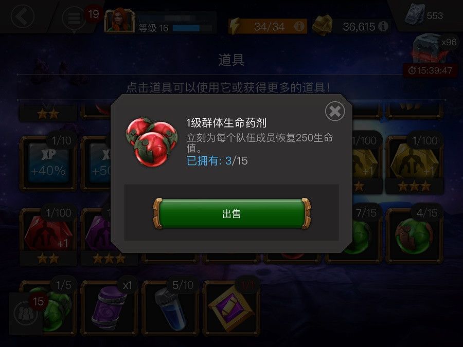 体力药剂比较好理解,即在副本战斗中恢复体力,体力不足则无法继续探索地块、挑战英雄。这里需要注意的是,当你升级过后体力会无条件回满,所以在使用体力药剂前要看好自己的经验条。如果快要升级了,就用小体力药剂先撑一下,不然使用完大体力药剂还没走几格就又升级回满了,相当于是浪费了大体力药剂。