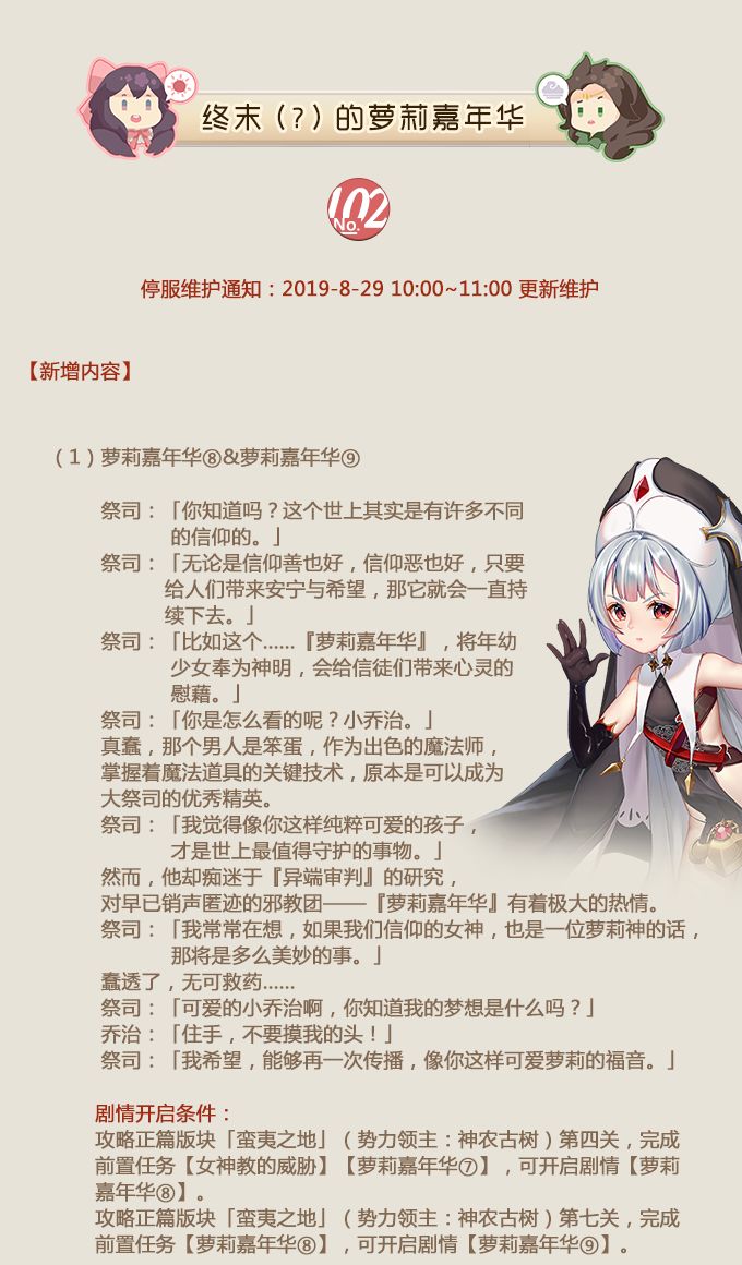 No.102终末(?)的萝莉嘉年华 《姬魔恋战纪》8月29日更新公告