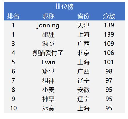 本期来自天津代表队的“jonning”大大和伤害代表队的“墨貍”高局榜一!两人不相上下~~~随时都可能有变化哟,太激烈了!!