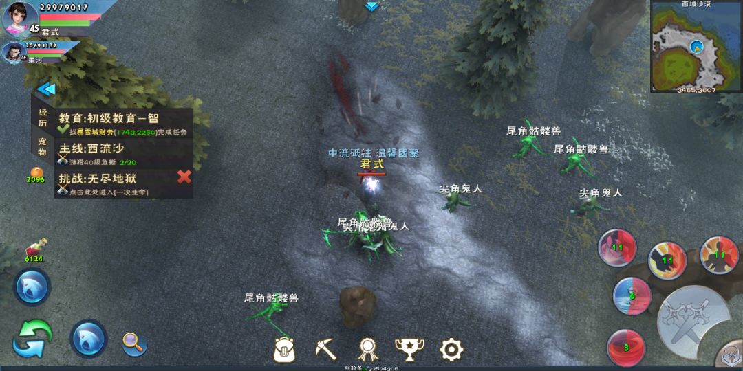 这个位置要求就比较低了,都是30级的怪物,27w攻击的仙魂剑就可以轻松打死,不过怪物有远有近,防御不够的话消耗药还是蛮快的玉玺之木