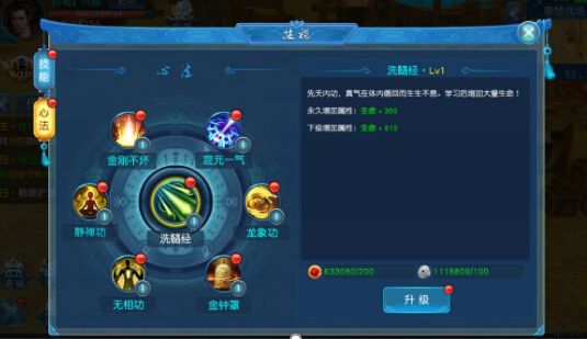 A、心法升级消耗修为和银两,心法最高等级为150级
