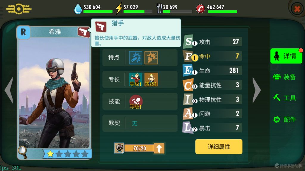 适合生产的居民,适当地升级工具对提升生产能力起到关键作用。在失去伊甸园发生器的避难所,没有强力的生产工具可没法养活这么一大家子。需要注意的是,生产工具的等级不受居民等级的限制哦。