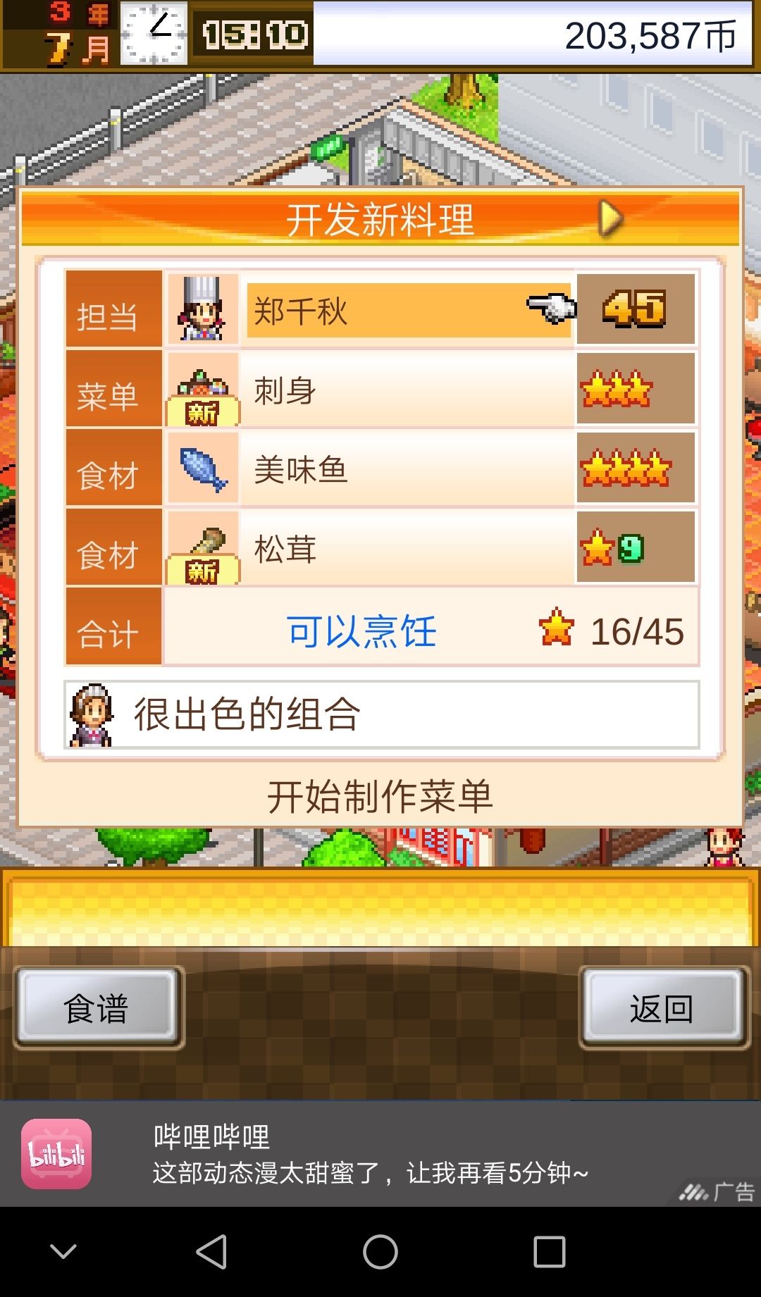 美食梦物语3年9月怀石料理速出记录