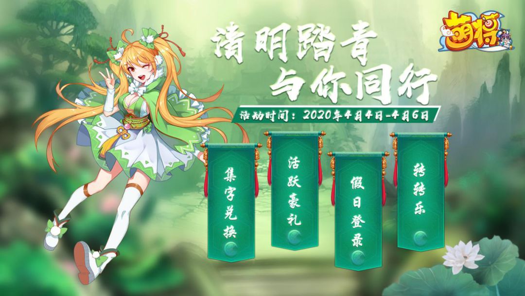 《萌将风云》将于4月4日0点开启清明节活动。清明节,又称踏青节,踏青郊游是清明节的一大主题,让我们一起感受体验“万象更新”的变化