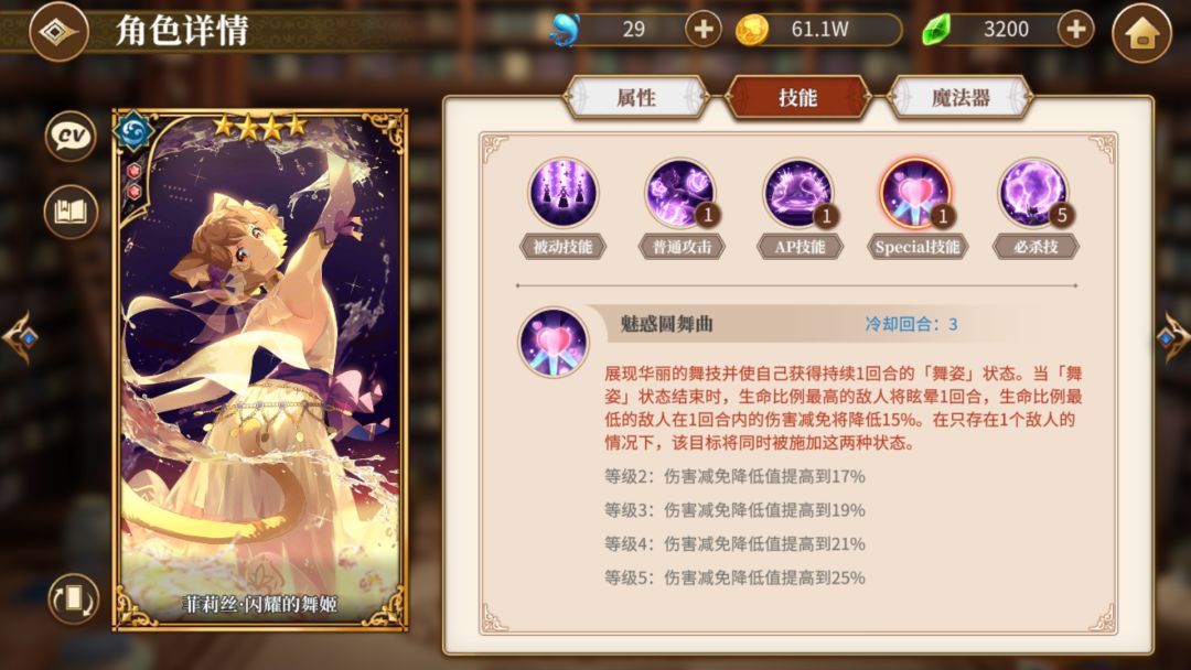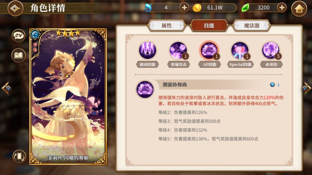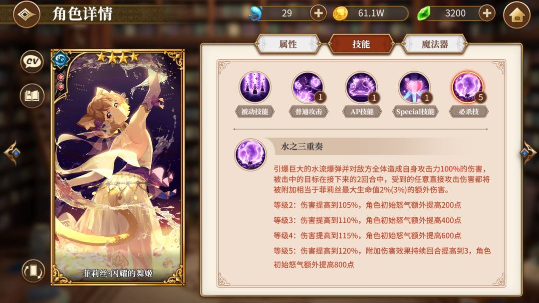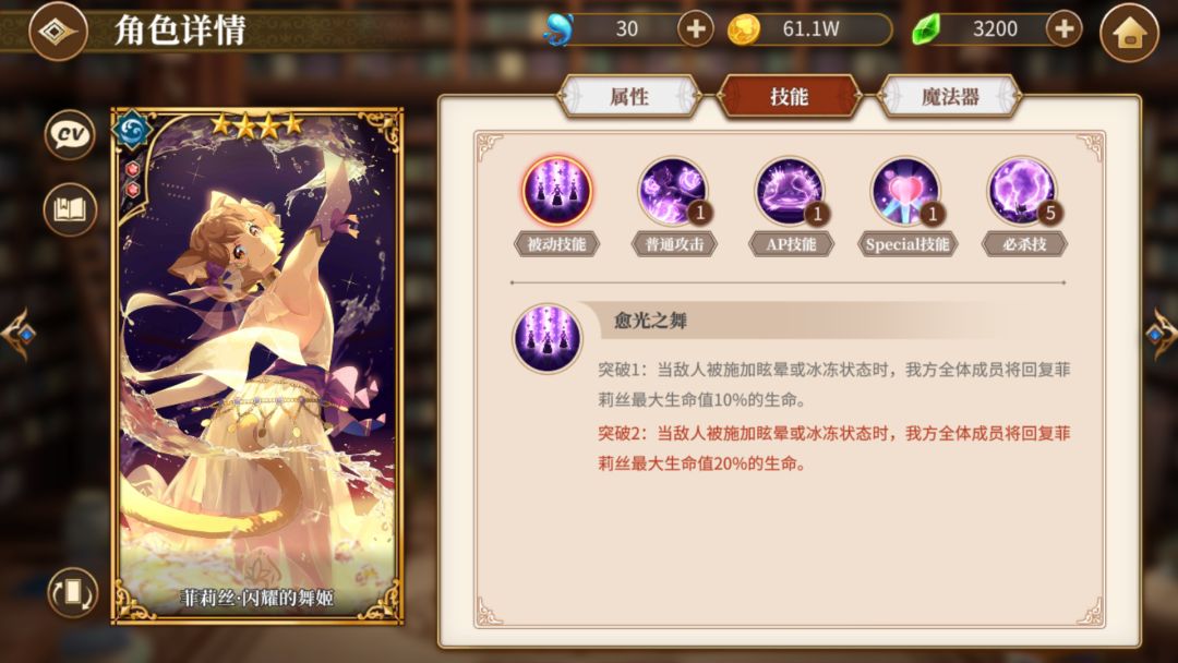 而菲利斯被动就厉害了只要眩晕或者冰冻己方全体成员恢复20%生命,菲利斯sp又完美契合自身被动简直比旗袍雷姆不知好了几倍,不愧是re0第一奶妈,在来说,菲利斯大招群体伤害施加一个被动技能2%菲利斯生命的伤害连击队用就更厉害了~ap技能也契合大招回复怒气,