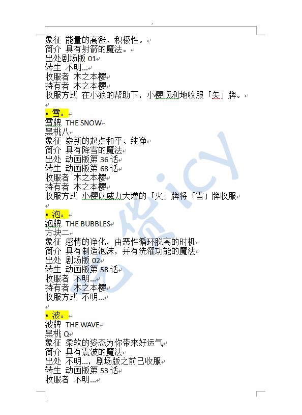 根据《魔卡少女樱》52张库洛牌核对出来暂时没人拿到的牌(一共是53张库洛牌,还有一张被遗落的是希望)