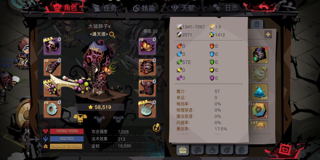 祝贪婪洞窟越来越完善附加自己目前的属性图。
