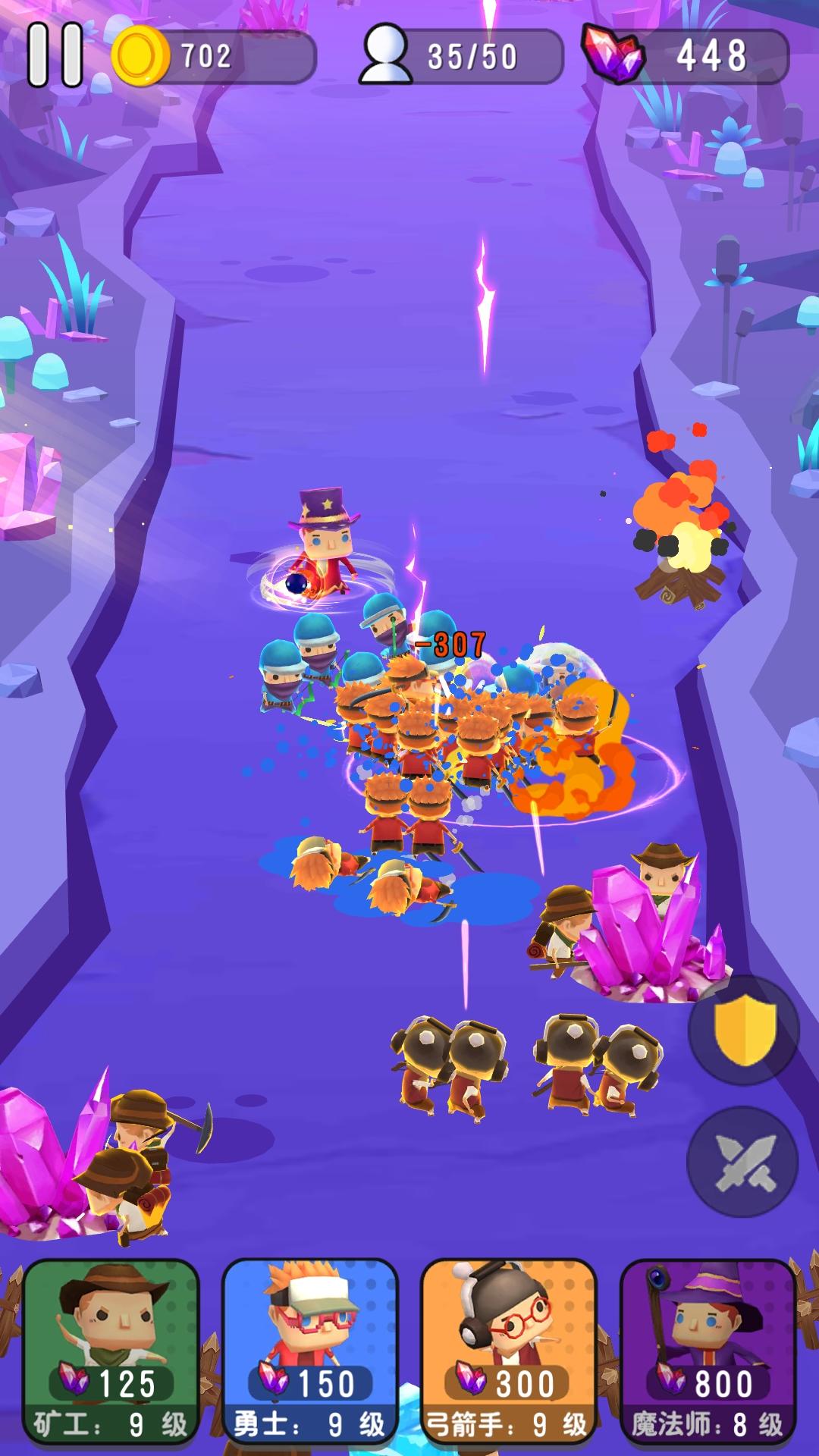 推荐理由:1、玩法简单易上手。两边造兵互推,目前只能推电脑,据说之后的版本可以玩家间对战。50VS50的大阵容,打起来也是过瘾。2、人物形象Q萌。其实更想用蠢萌来形容,不过他们并不蠢,敌人来了的时候会呼救“大表哥救我!”还会有互不相让的叫嚣喊话。3、数值养成自动化,不肝不氪。这简直是我这种养老玩家的福利,角色的升级看个广告就可以自动完成,解放了双手。