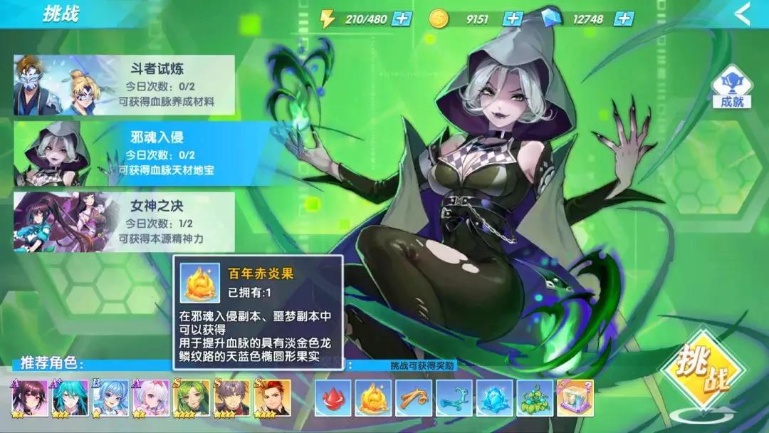 游戏中的龙核、天材地宝的获取途径,分别是在挑战玩法中“黄金之路”里面的“斗者试炼”与“邪魂入侵”两个副本中产出的。每天这两个副本分别有2次挑战机会。另外,在挑战副本过程中达到某个成就后,还可以领取丰厚的奖励