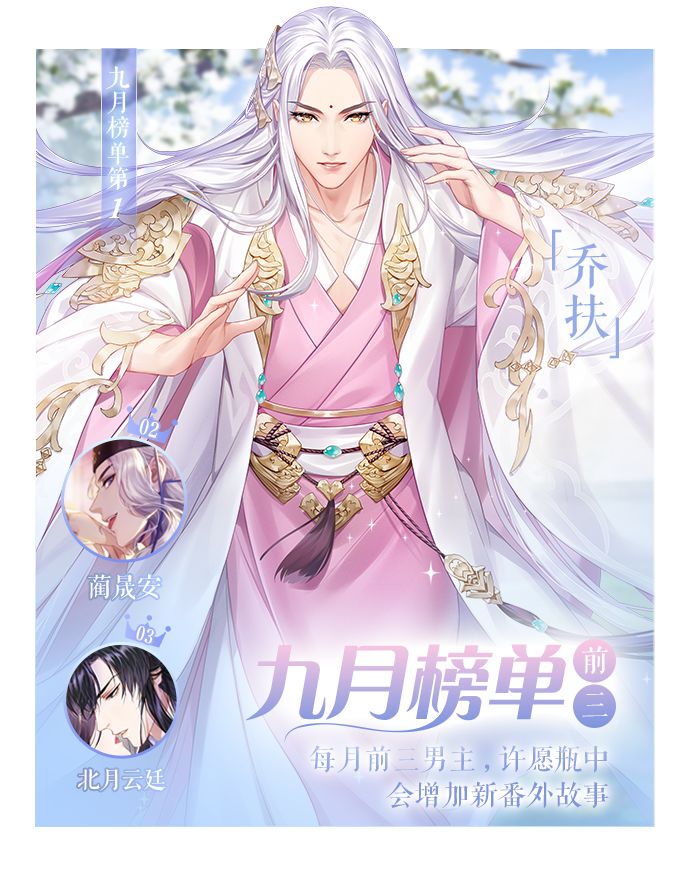 恭喜乔扶、蔺晟安、北月云廷三位小哥哥荣登top3,番外故事可前往许愿瓶抽取~