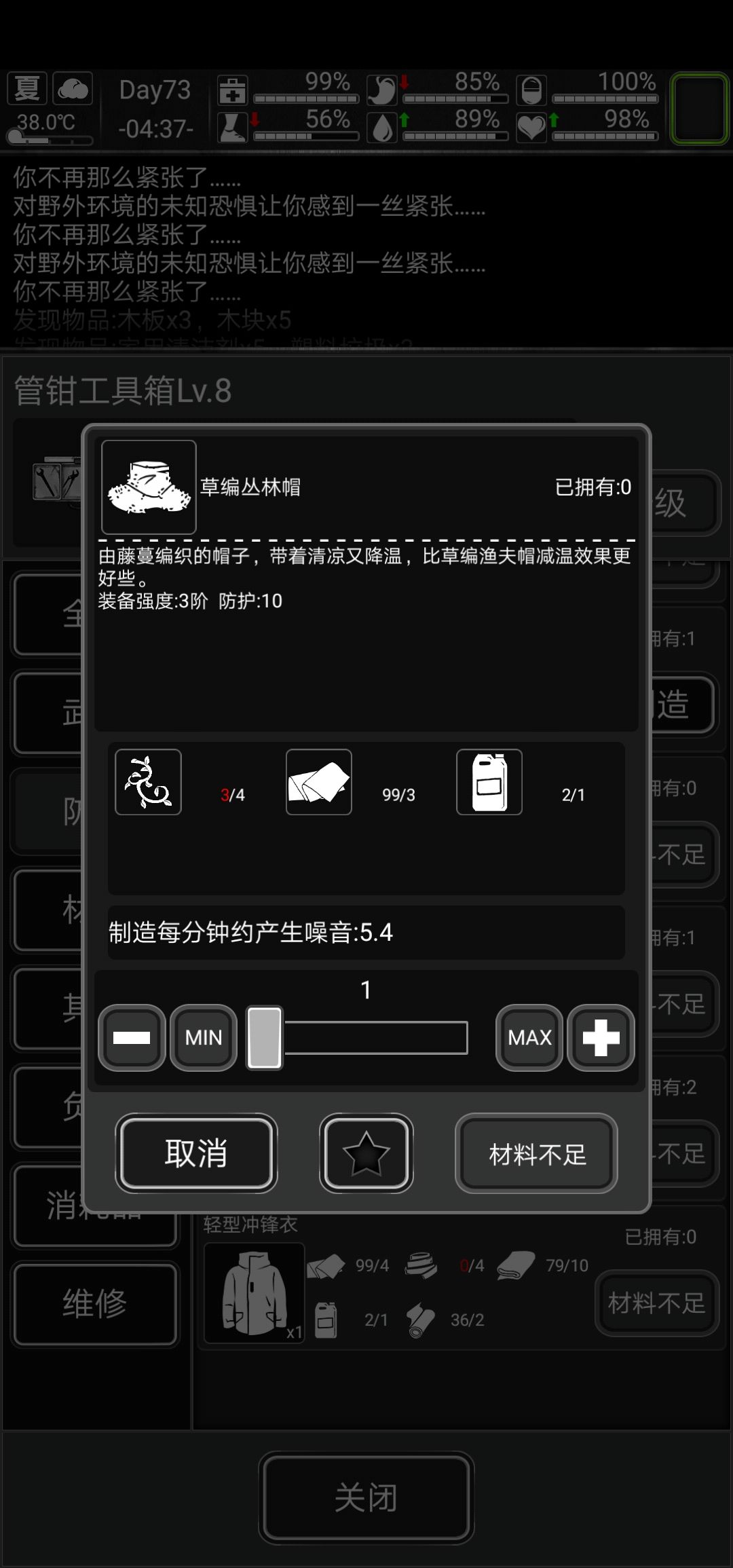 另外有金属长矛以后可以带着盾去简单5尸潮开无双,新手不建议去打六七(简单5开无双不舒服吗)。帆布不好找也可以是渔夫草帽高温抗性50度80护甲不太影响。