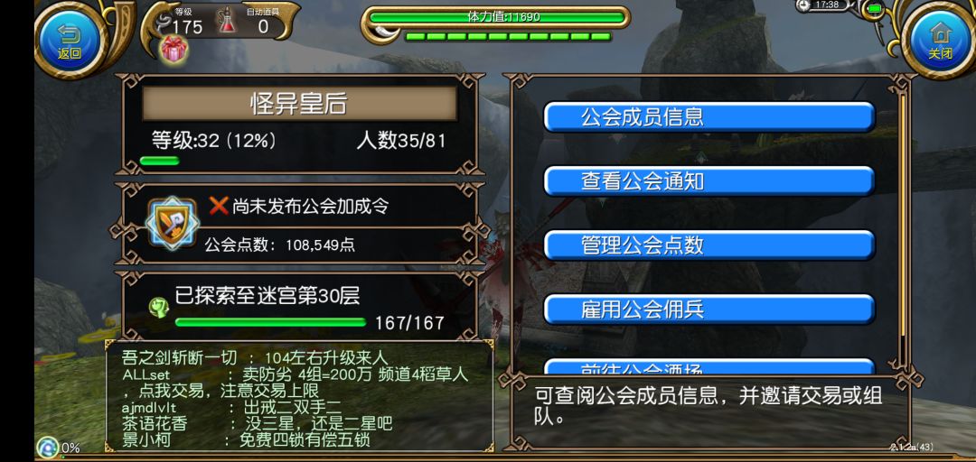 我本人很佛系的,拉人入会都是随缘,偶尔在世界上喊一喊,看见世界上有人求公会就拉一个,所以公会人少,才30多人(我一直怀疑是不是口号不对…)