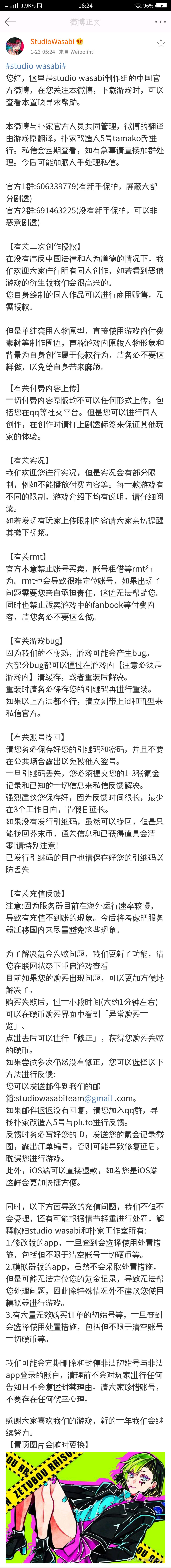 官方在处理破解版账号 玩破解版的不要到官方底下跳 目前误封率几乎为0 也就是说如果你被封了就是你的问题 不要到官方底下跳(重复)如果出现了误封自己给日方发邮件提供你的id和付费记录等一切能证明误封的证据说明情况 (在氪芥末币的界面有反馈按钮 点进去选择其他)
