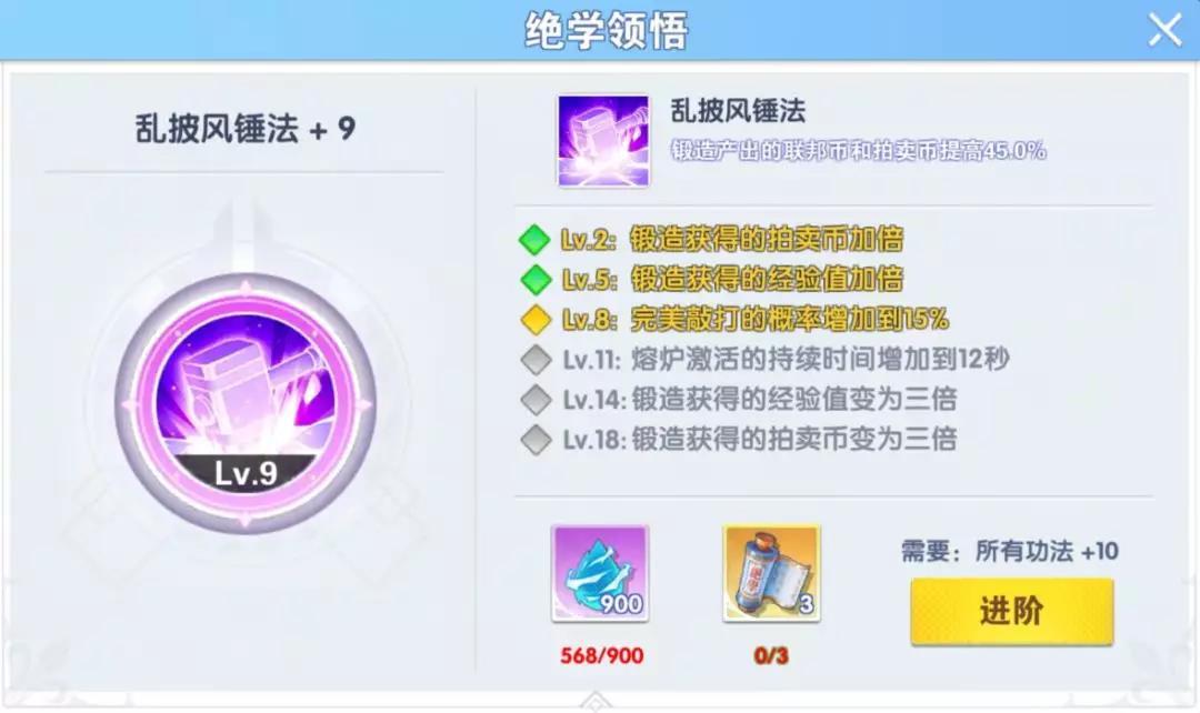 但要注意的是,一定要等到突破2级的时候才开始去玩锻造系统。若是有条件的魂师大大,则可以考虑突破5级的时候才去玩锻造系统,这样才能让自己的收益最大化。总的来说,就是先屯石头,等“乱披风锤法”绝学升级后再开始“打铁”