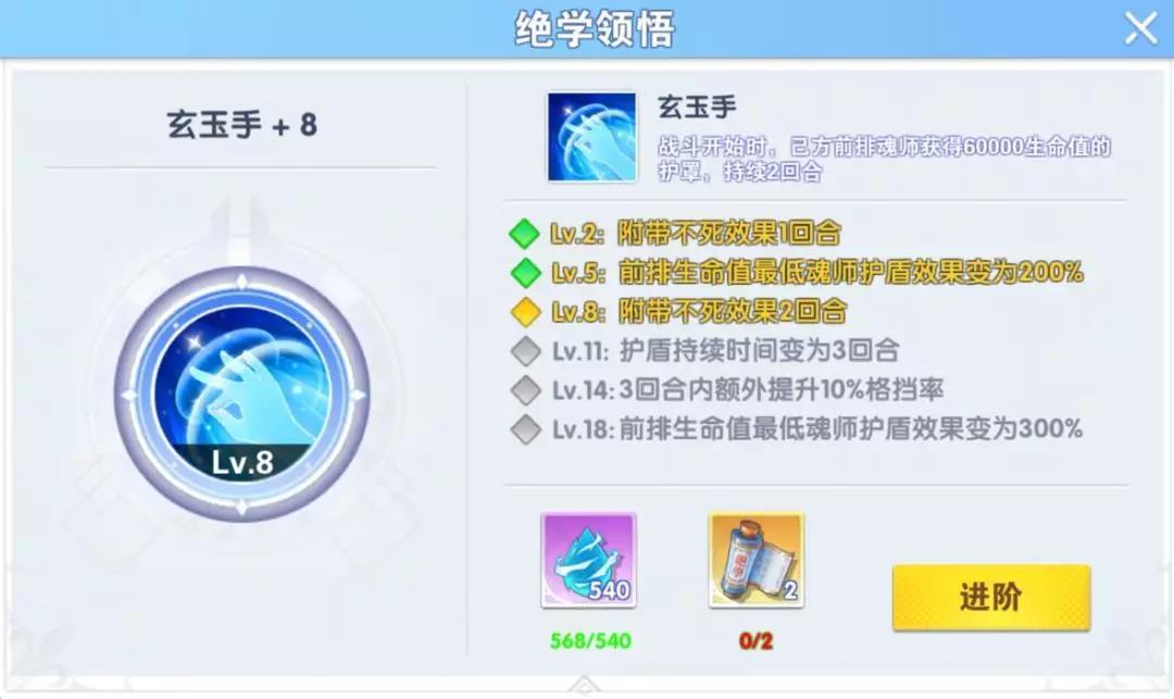 突破2级后,能让前排魂师拥有1回合的“不死”技能