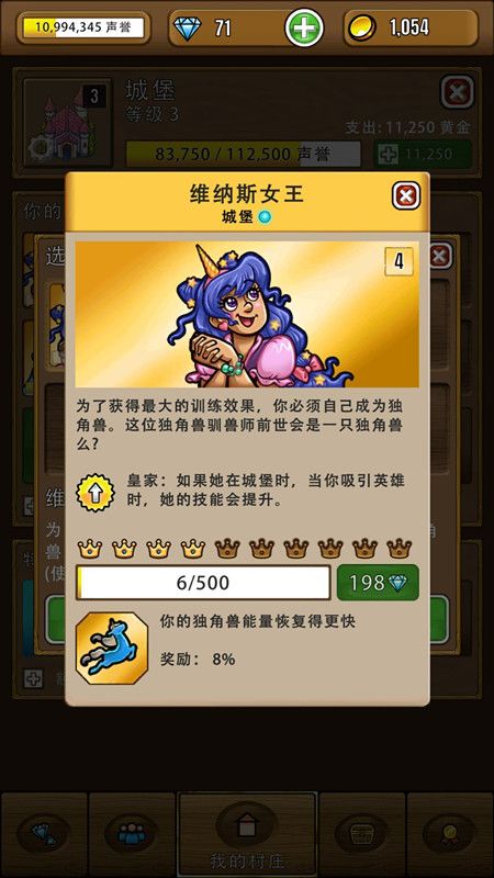 方法二:拥有维纳斯女王,你的独角兽能量可以恢复得更快哦,而且这个队员的专属技能是可以升级的。当你吸引英雄来到你的村庄时,她的技能就可以得到提升。