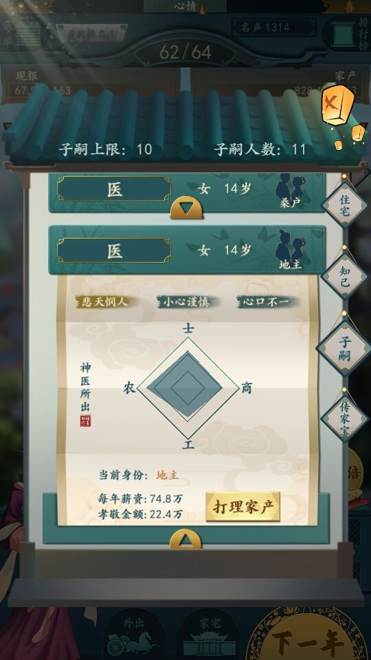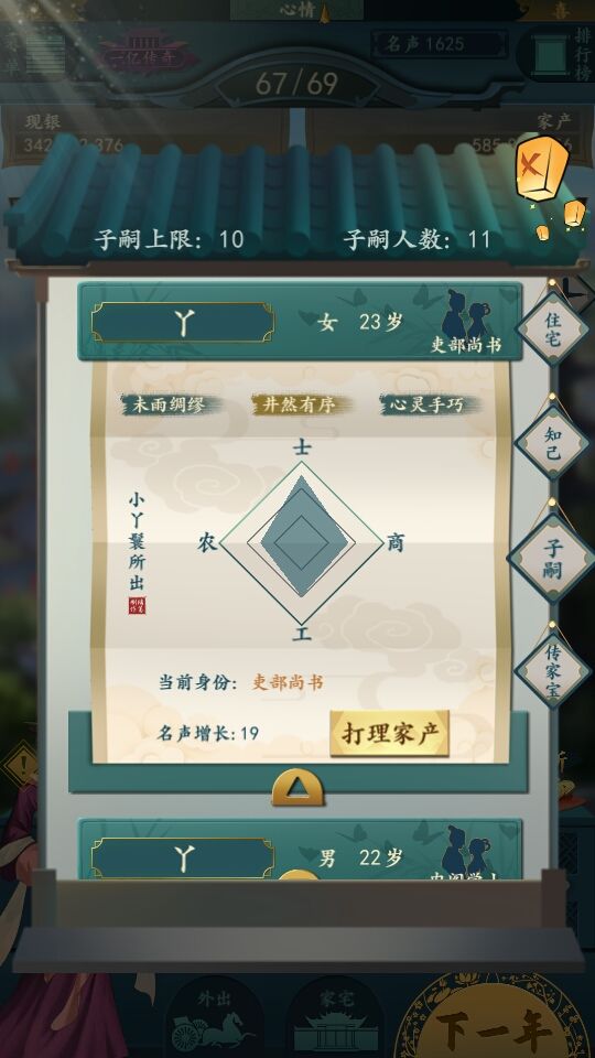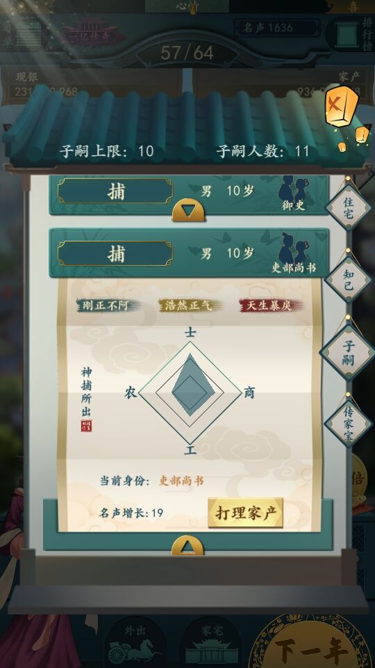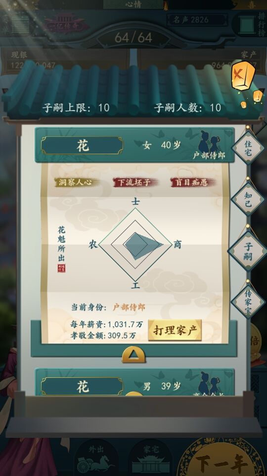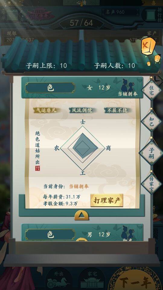 打理家业:与店铺相同属性的管理者的相同属性越高会让店铺收益提高/降低(具体数值与该店铺的产业价值和管理者的属性有关)。