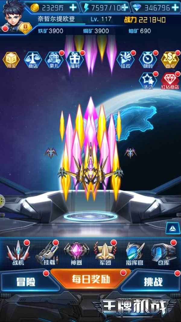 打开你的战机界面后,就可以在待机仓库中游览所有的战机。未激活的战机都是上锁的,需要收集碎片,或使用钻石购买获得。