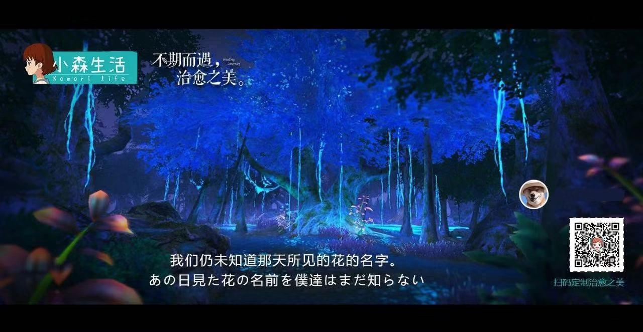 H5的最后可以定制你的专属小森,选择你最喜欢的场景之一,输入在这个场景下你最想说的话,就可以定制属于自己的小森啦。最后导出图片的效果,是不是很像动画电影中的截图呢?赶快向周围的朋友们分享这一份治愈吧!