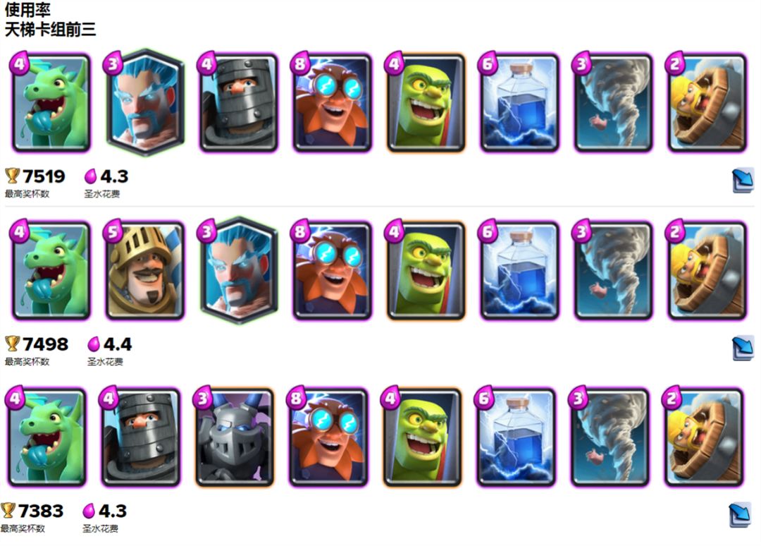 当然在此期间王子也于2017年底进行了一次增强,攻击速度提升至1.4s外加生命值提升5%。双王子尤其是黑王大幅度增强又一次让双王子组合重新回到主流卡组之中,王子的高输出和黑王子的范围伤害形成了互补,配合石头人或者巨人这一类速度慢血量厚的卡牌,手上捏个小法术就可以来直接一波势不可挡的平推。