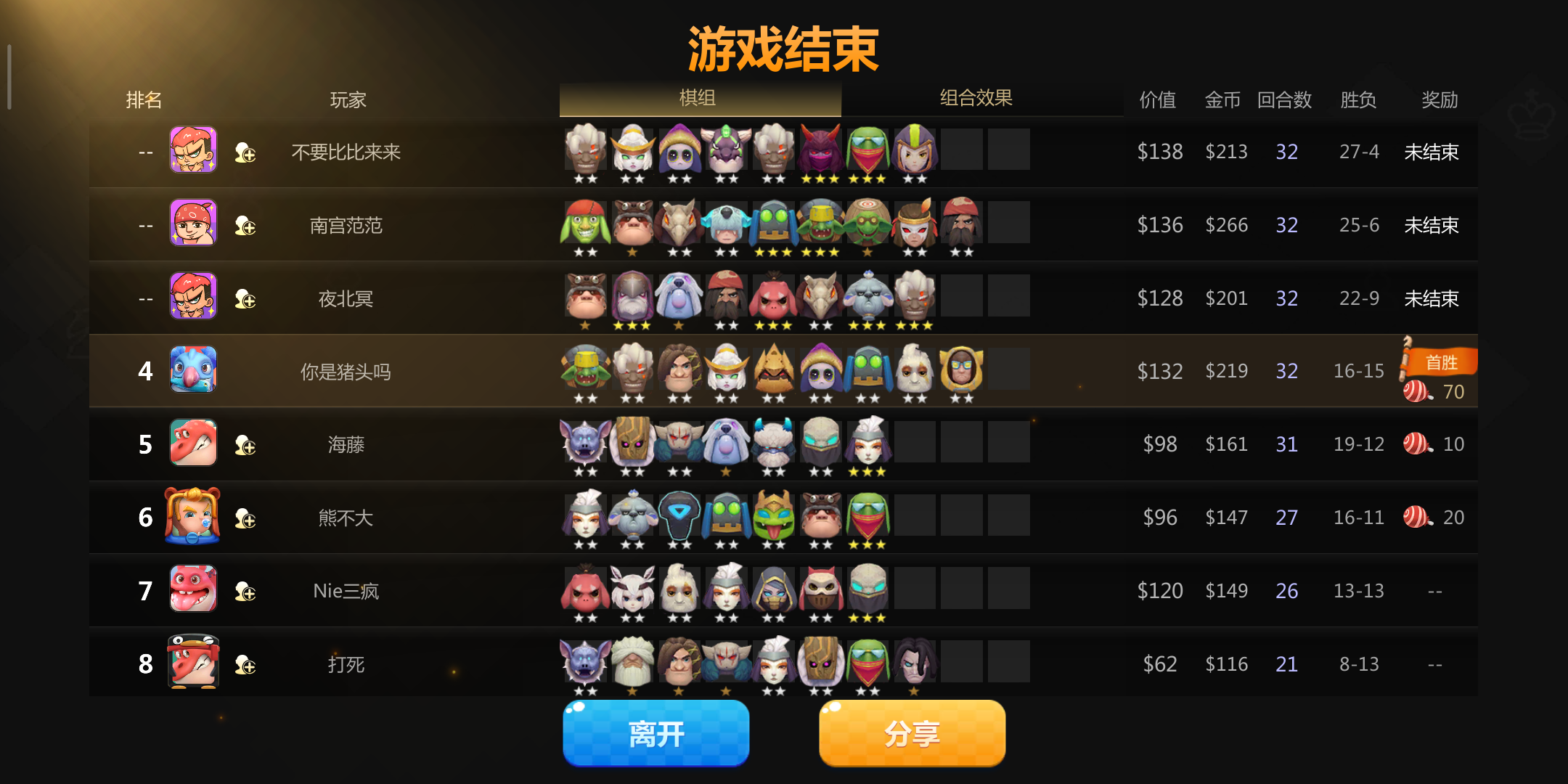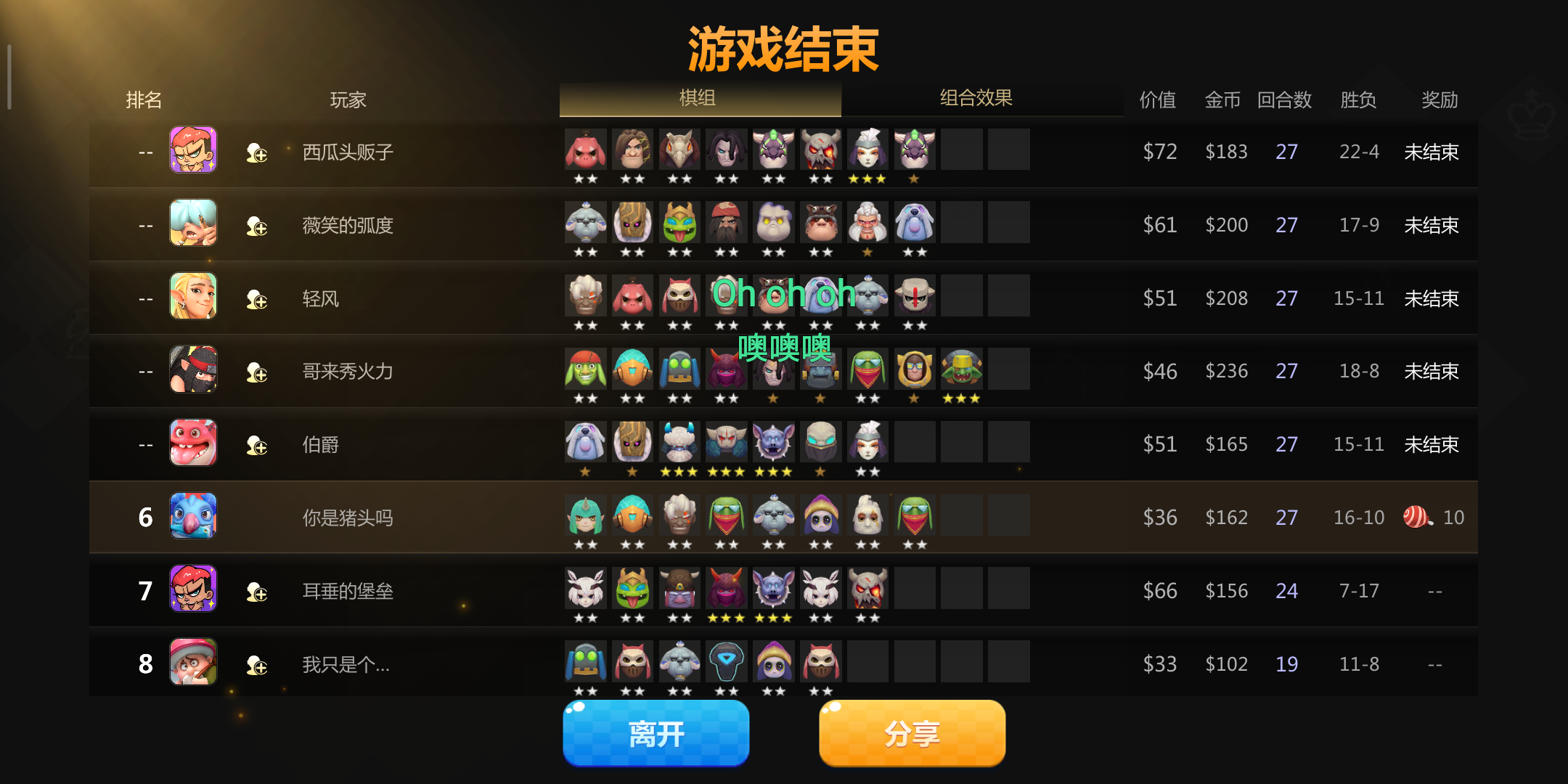 前面的好几把我没有截屏,在我意识到非酋之力开始苏醒之后开始截屏记录,记录一位酋长是如何在自走棋里摸爬滚打。这运气简直了,连续好几把30回合还合不出一个三星的,哭了,对萌新真是满满的恶意啊