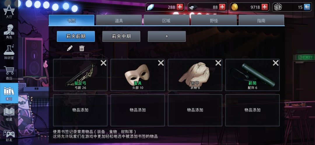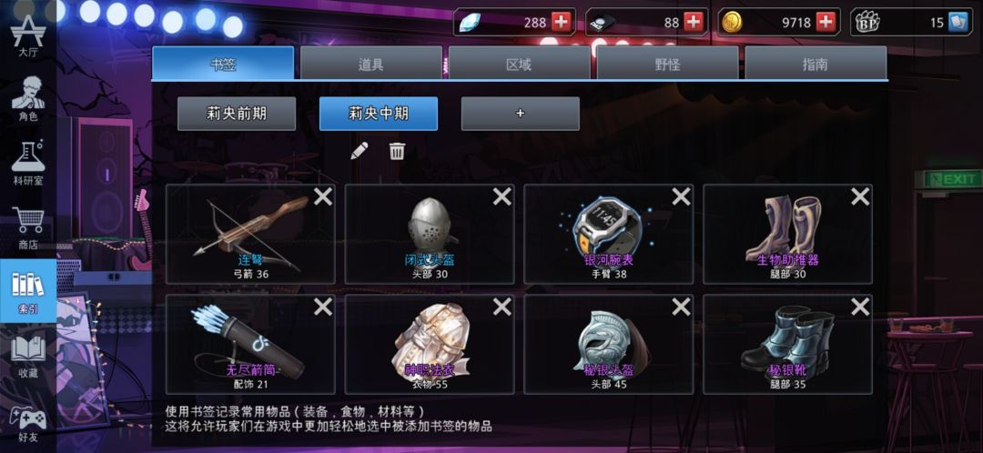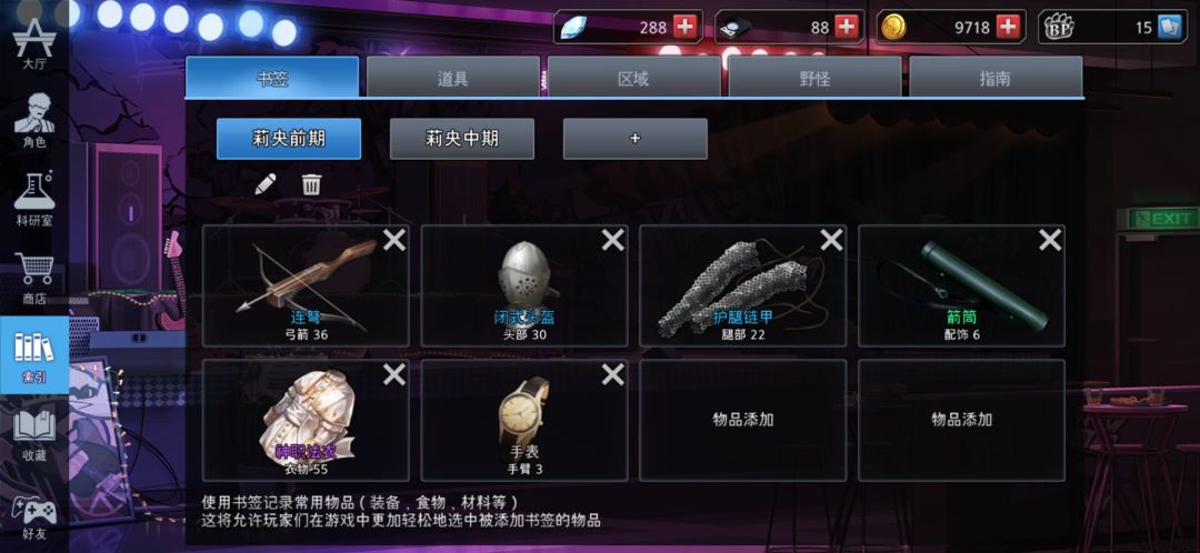 因为成型太慢,我们一定要记住,摸东西要快,不要贪材料,因此以下只有加粗的是必需的,其他一切都可以暂时舍弃,以后刷野做药再顺便拿
