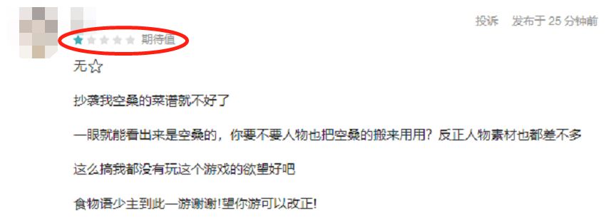《星空猫萌》(简称星猫)一经曝光,就受到了很多玩家的关注。在预约榜上快速的从200名左右升到了前十的好成绩。结果在4月2日,引发了一起风波:我们海报上的食物素材涉嫌侵权某同行的游戏!当时还是满分10分的星猫,一瞬间就被大量1星差评覆盖变成了9分、8分、7分……