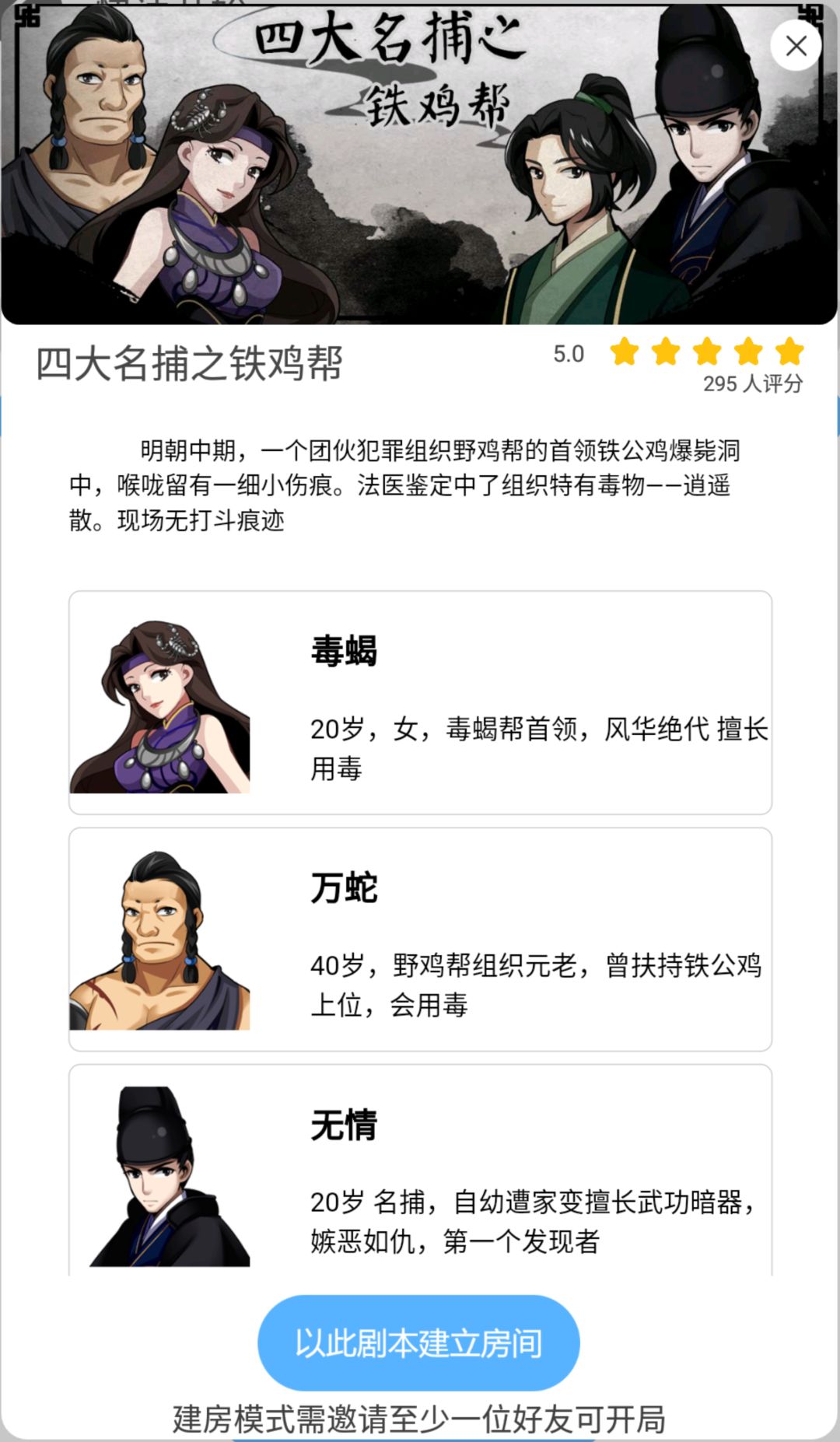 明朝中期一个团伙犯罪组织野鸡帮的首领铁公鸡暴毙洞中,喉咙留有一细小伤痕,法医鉴定中了组织特有毒物——逍遥散。现场无打斗痕迹。