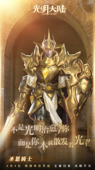 周年庆资料片【王者归来】今日正式上线,万众期待的《光明大陆》两周年庆也随之开启盛典狂欢。暗黑游侠、混沌秘术、神恩骑士三大职业荣耀归来,更有“传火计划”送上价值近万元的特别福利,周年庆直播狂撒万元红包雨!超多精彩不容错过,丰厚福利惊喜送出,盛典狂欢等你嗨玩!勇士们,赶快叫上伙伴们,一起加入4月周年庆持续一整月的激燃狂欢吧!