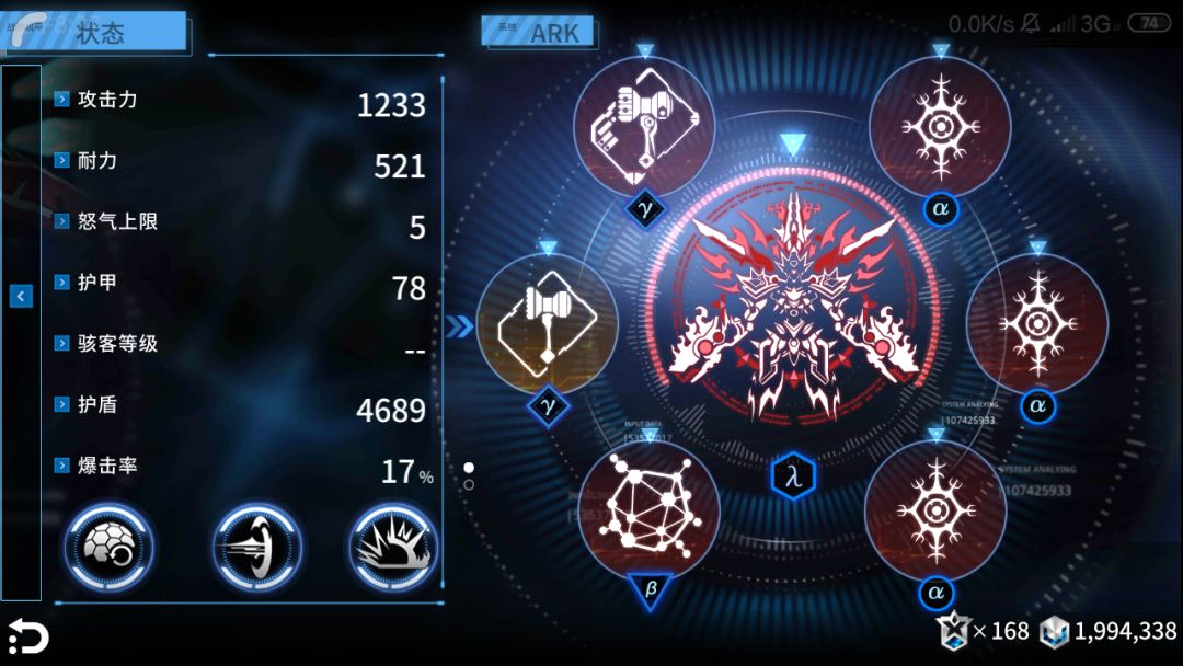 因为绯红有三个α槽 我放了三个顶尖细胞突触(郎氏结构增幅) 共加了297攻击 30%重击伤害。