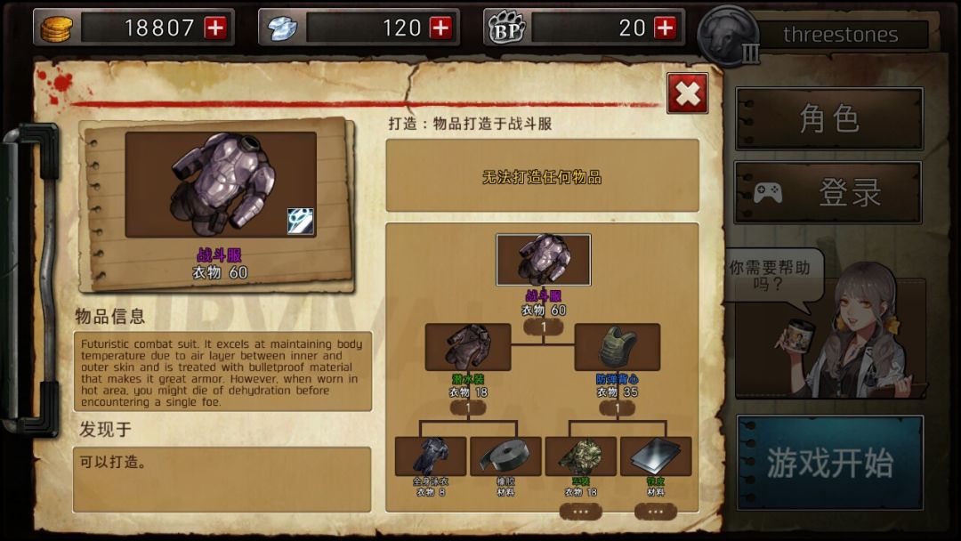 头部很简单,自行车帽子到处都是,外加一颗子弹就提供15护甲,在海滩可以找到,再去做那个紫色的需要一部手机(可合成,和做紫色54伤害的磁轨炮一样要一部手机,这样你可以在工厂就存好3铁丝,灯塔3电池做好3电子元件,打狗可以有钢笔出现,就是厚纸很难收集)