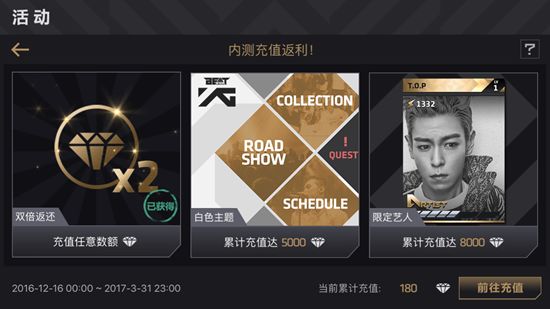 3.彩排服充值活动奖励(内含T.O.P独家未公开写真);
