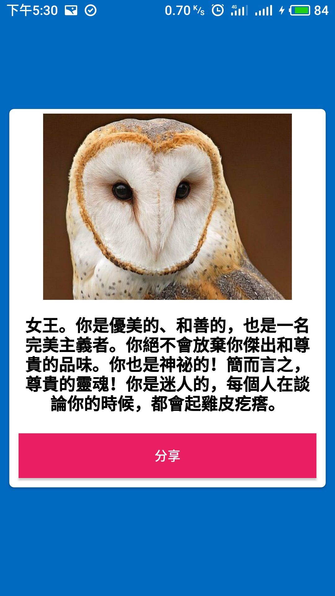 测了3次都是猫头鹰