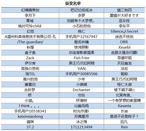 终于用最快的速度将获奖名单整理出来了