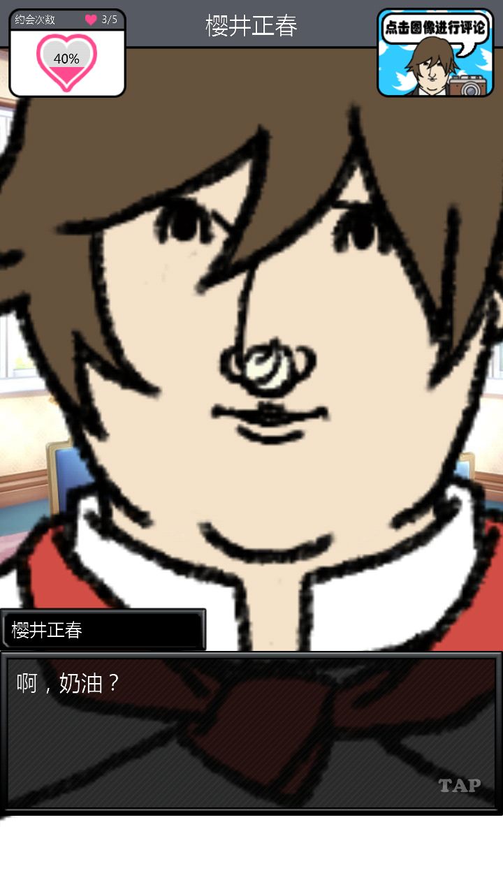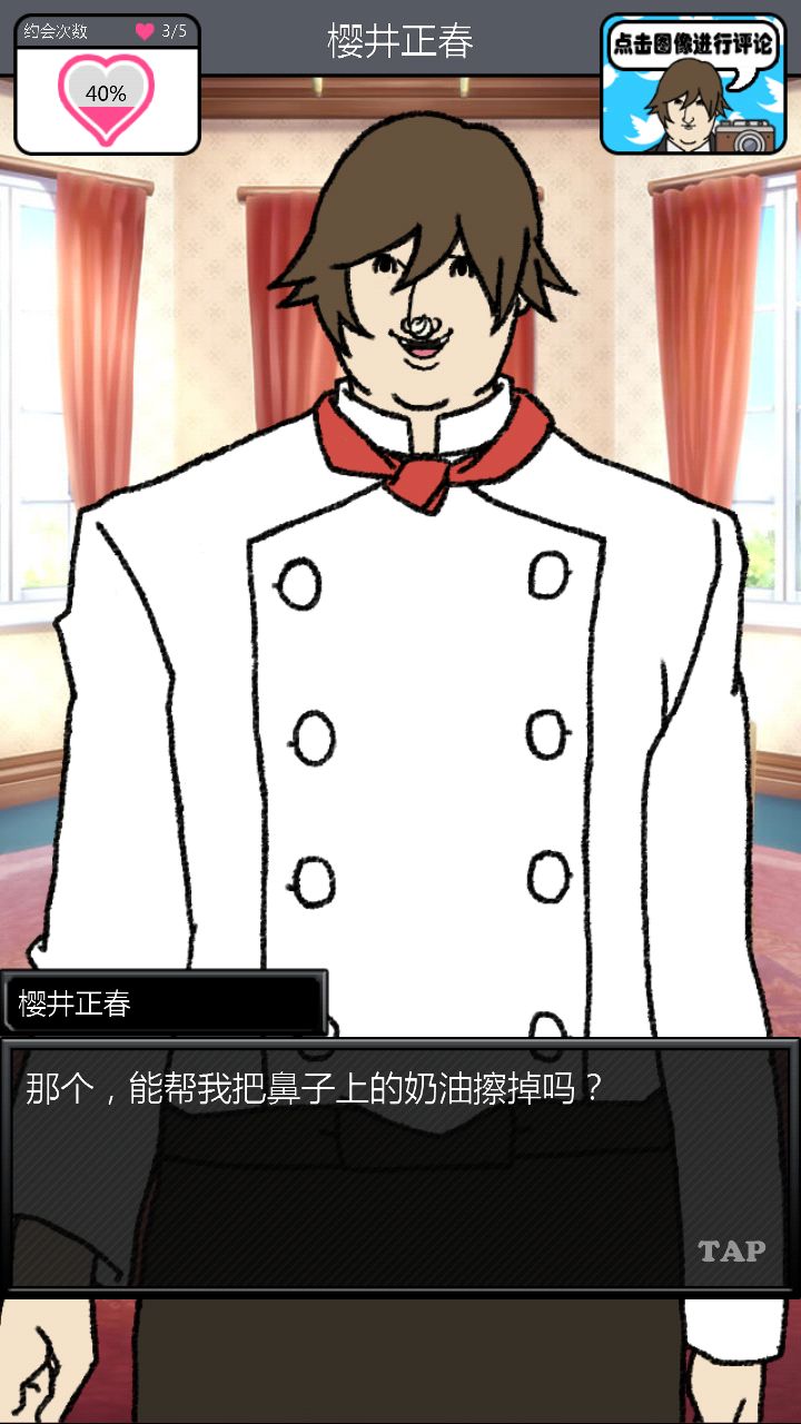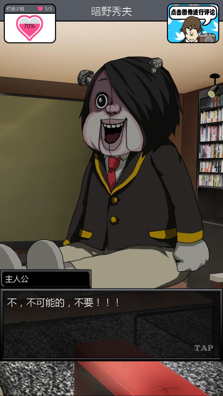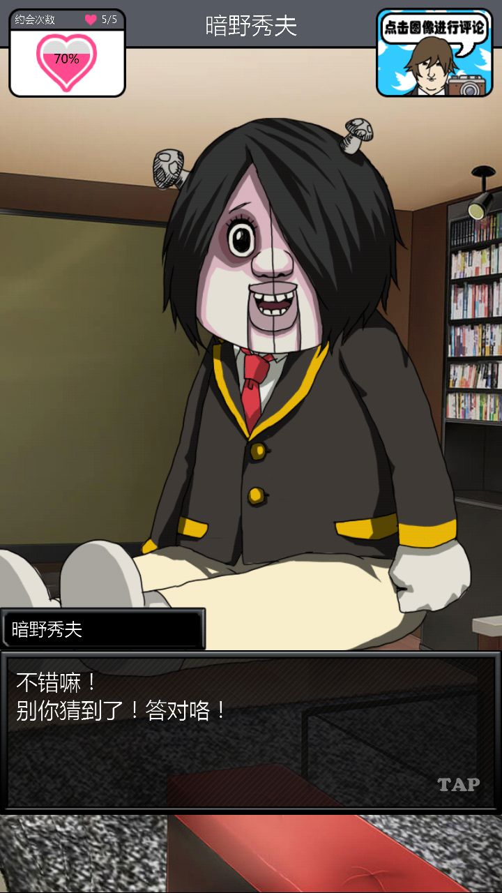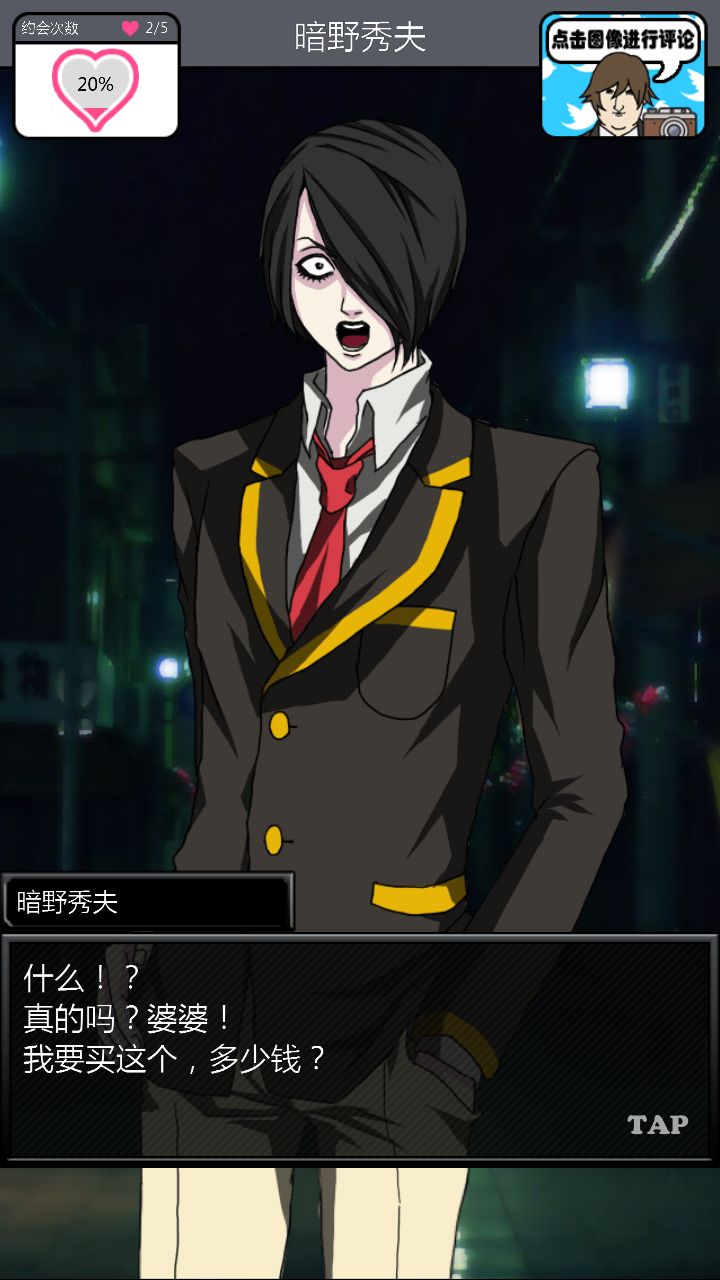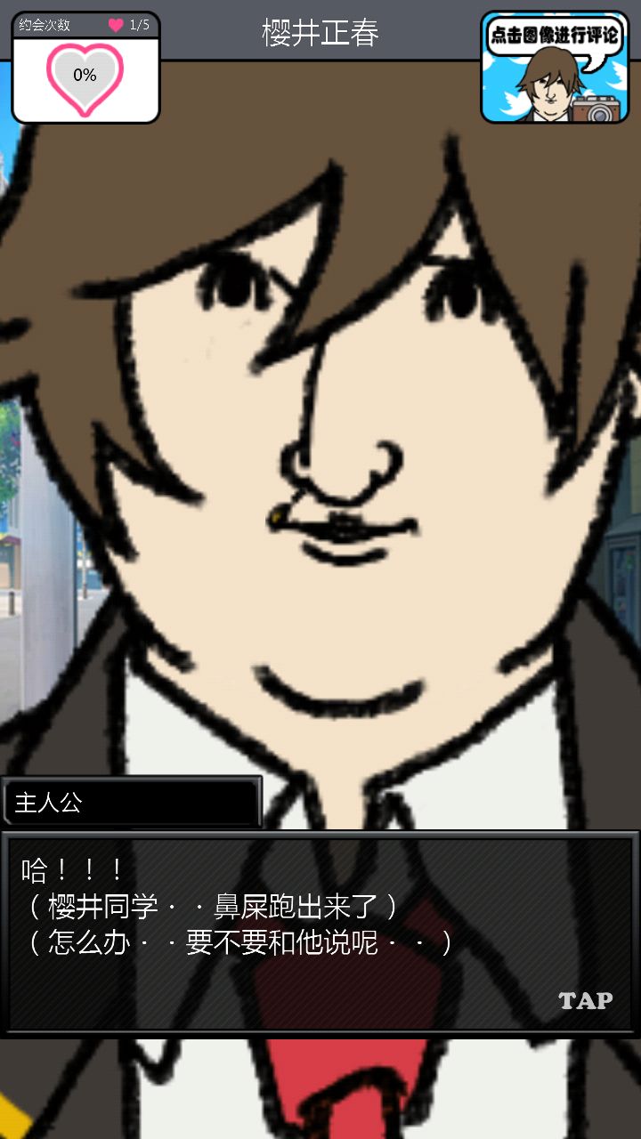 第二个对象是这位大佬。。。。。对不起你的BGM这么那么。。。。阴森。与他第一次约会的时候强!烈!建!议!把!音!量!关!掉!神他妈第一次约会给你讲鬼故事!那个滋滋滋的音乐怎么做的这么应景!再加上他的脸色我以为下一秒会有东西从屏幕里出现使我的手机砸到地板上碎成渣渣,所以果断转过手机屏幕一顿胡点,然后。。。。嗯。。。壁咚啊。。。真的是壁咚啊。。。呵。呵。呵呵呵【从那时开始心情就有些。。。奇怪】