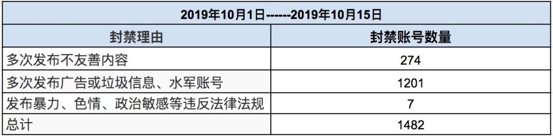 九月上半月禁言总量431,与其他数据减幅相比,禁言用户数减幅较小,因发布不友善、攻击性信息而被禁言的用户依旧突出,小管家希望各位Taper在与人交流时能保持基本的和善与友好,与人为善,从我做起。