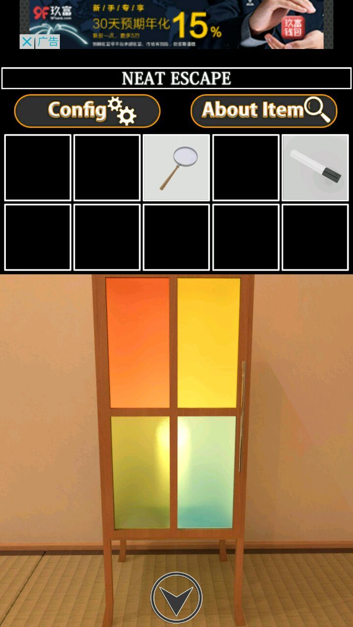 首先点两边坐垫,左边坐垫提示白色左下,右边拿一纸片,再点前面电视左边拿起盆栽提示绿色右下,电视右边盆栽拿起提示黄色左,后退左转看到玻璃门上提示粉色从下往上,后退关上门得提示:中右右左右中,后退左转两次点木盒输入提示得蜡烛,后退点盆栽背后得放大镜,再点下面黑书,左边提示阳光通过放大镜对黑纸使用,右边小图用放大镜得图1