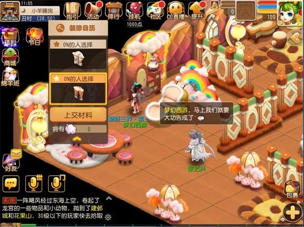 在活动期间,少侠只要帮助张艺兴前往十大门派成功拜师,即可获得一根绵羊毛,帮助张艺兴修葺小家。每天,张艺兴都将更新自己的装修日历,提出当天的装修目标,要求少侠帮忙选择最适合的方案,少侠可以用绵羊毛对自己最满意的修葺方案进行投票。在第二天,获得最高票数的方案就将出现在他的小屋中。