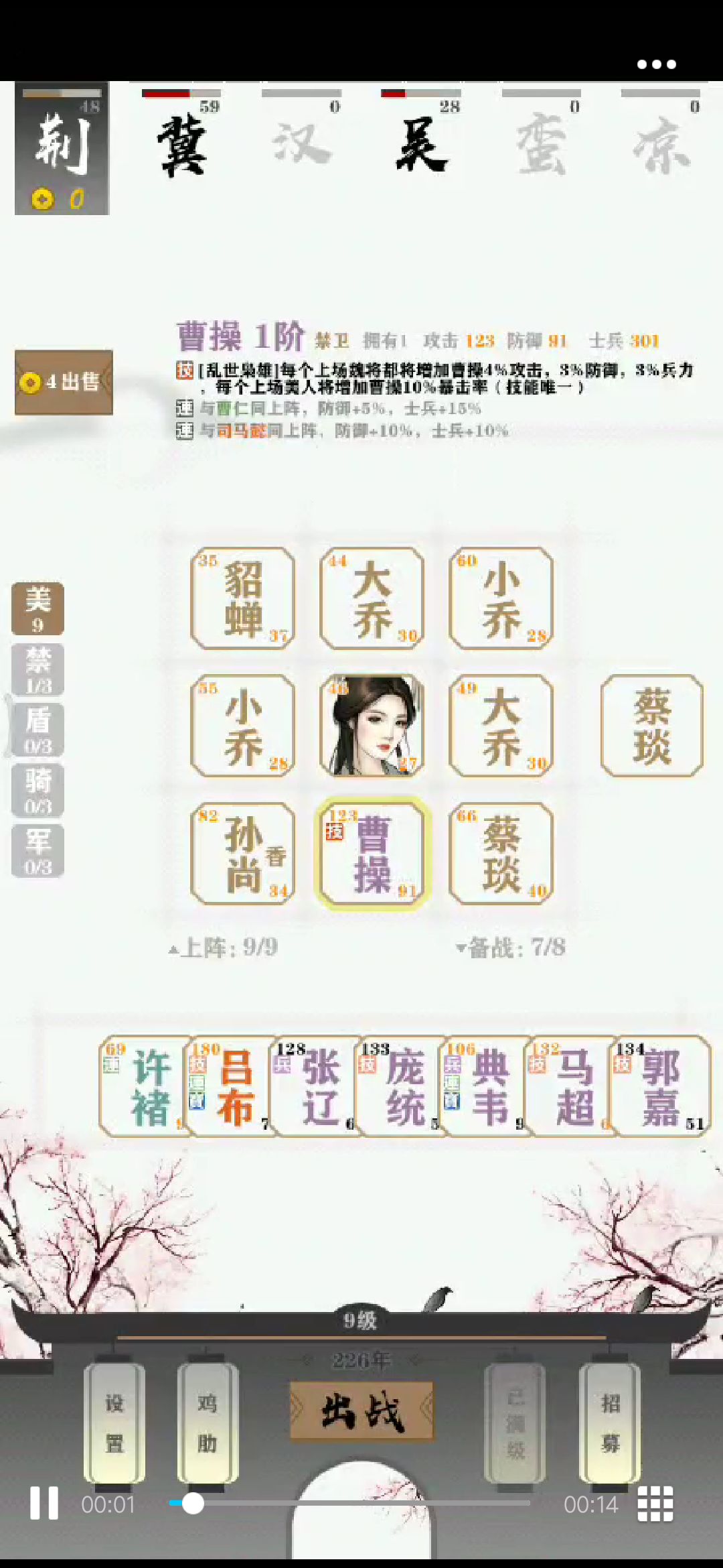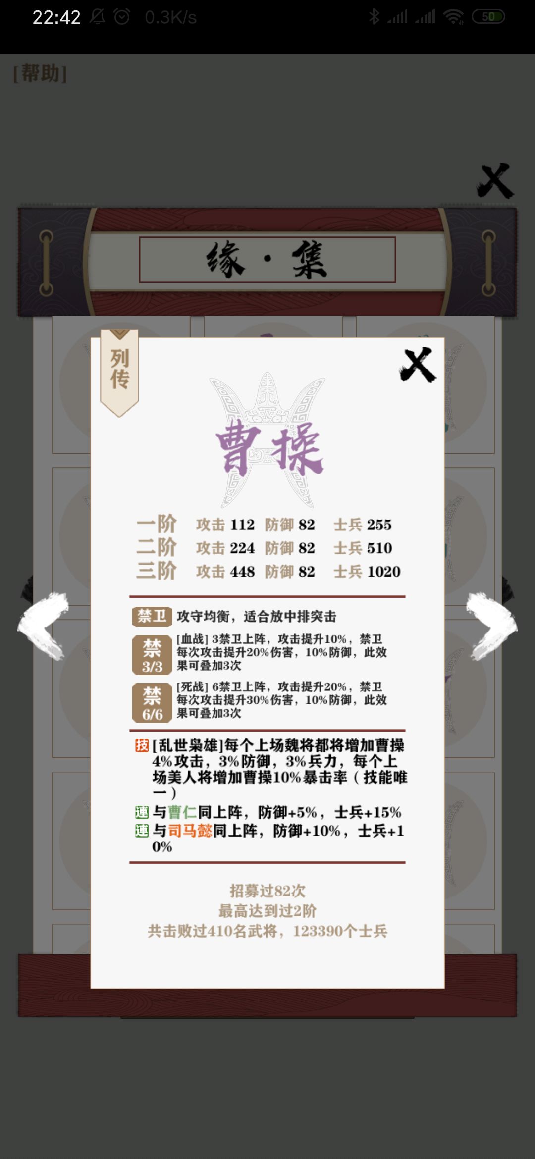 amazing!一个美人加10%的暴击率!美人越多曹老板越猛!