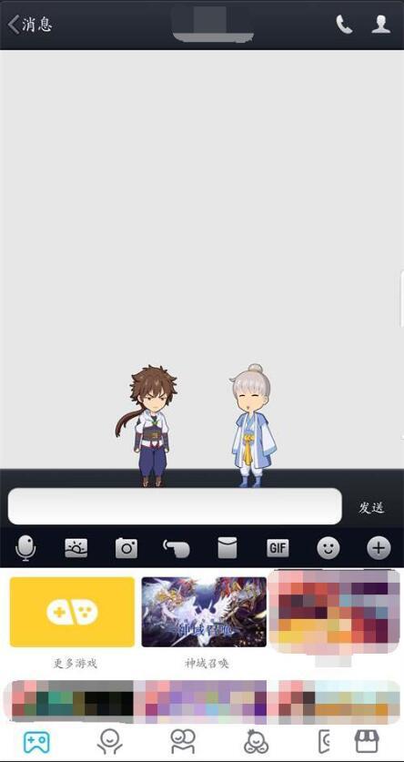 获取资格后,打开任意好友聊天框,点击下方的卡通人物拉起选项;在选项中选择《神域召唤》