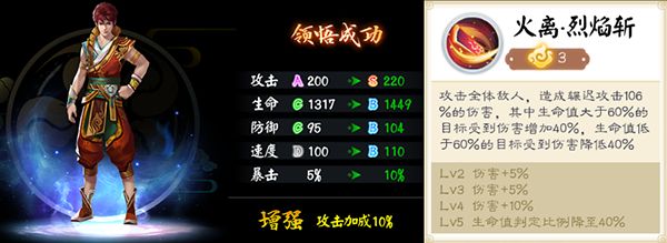 辗迟的大招有着高达146%左右的伤害系数,加上辗迟本身S属性的攻击力以及自身携带郁垒元神,不受任何其他辅助的情况下,辗迟可以对敌方全体单位(满状态)造成高达200%的伤害。从而达到秒杀敌方小怪,减少敌方行动,缩短总的战斗时间。