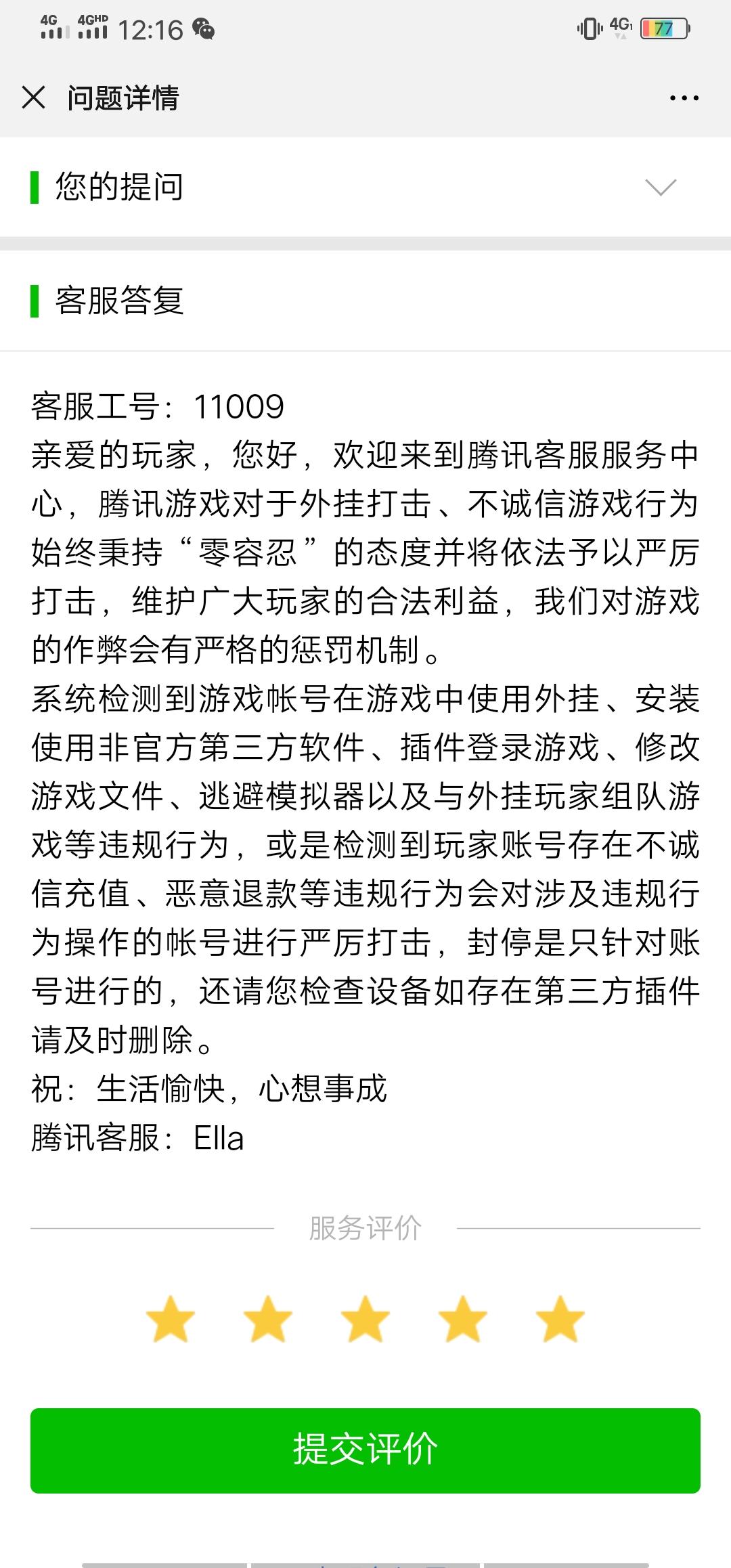事情经过:2019年11月17日晚上22点左右,本人与朋友一起开黑,当时跳的训练基地,落地后捡了一把枪就对着我旁边的敌人开枪,子弹还没打完,屏幕就显示“异常登陆”再登陆时就显示封号3650天,本人绝对没有用“第三方软件”钱也没少冲,就这样平白无故封我10年,希望官方重新检测,给一个合理的解决方案。