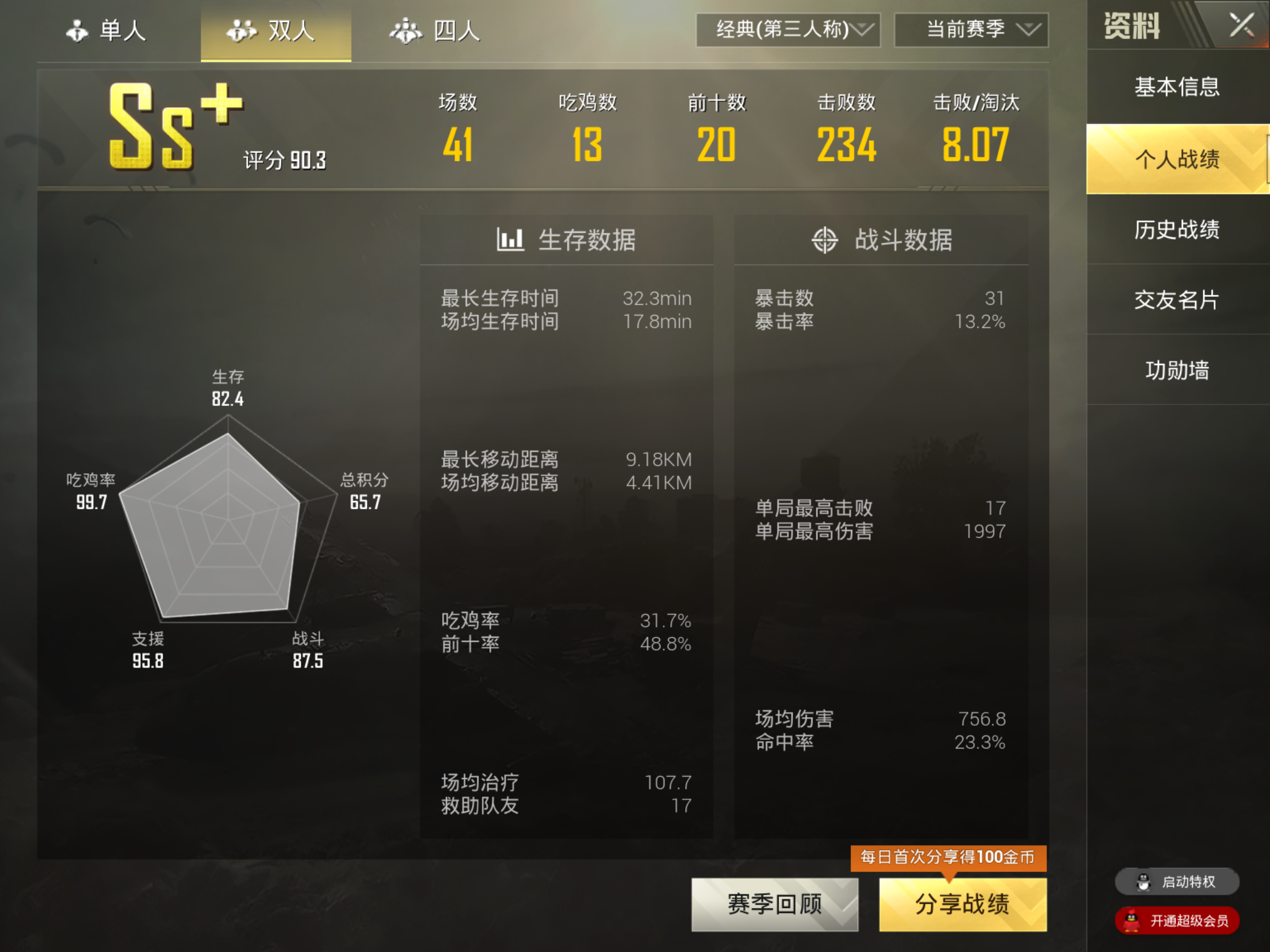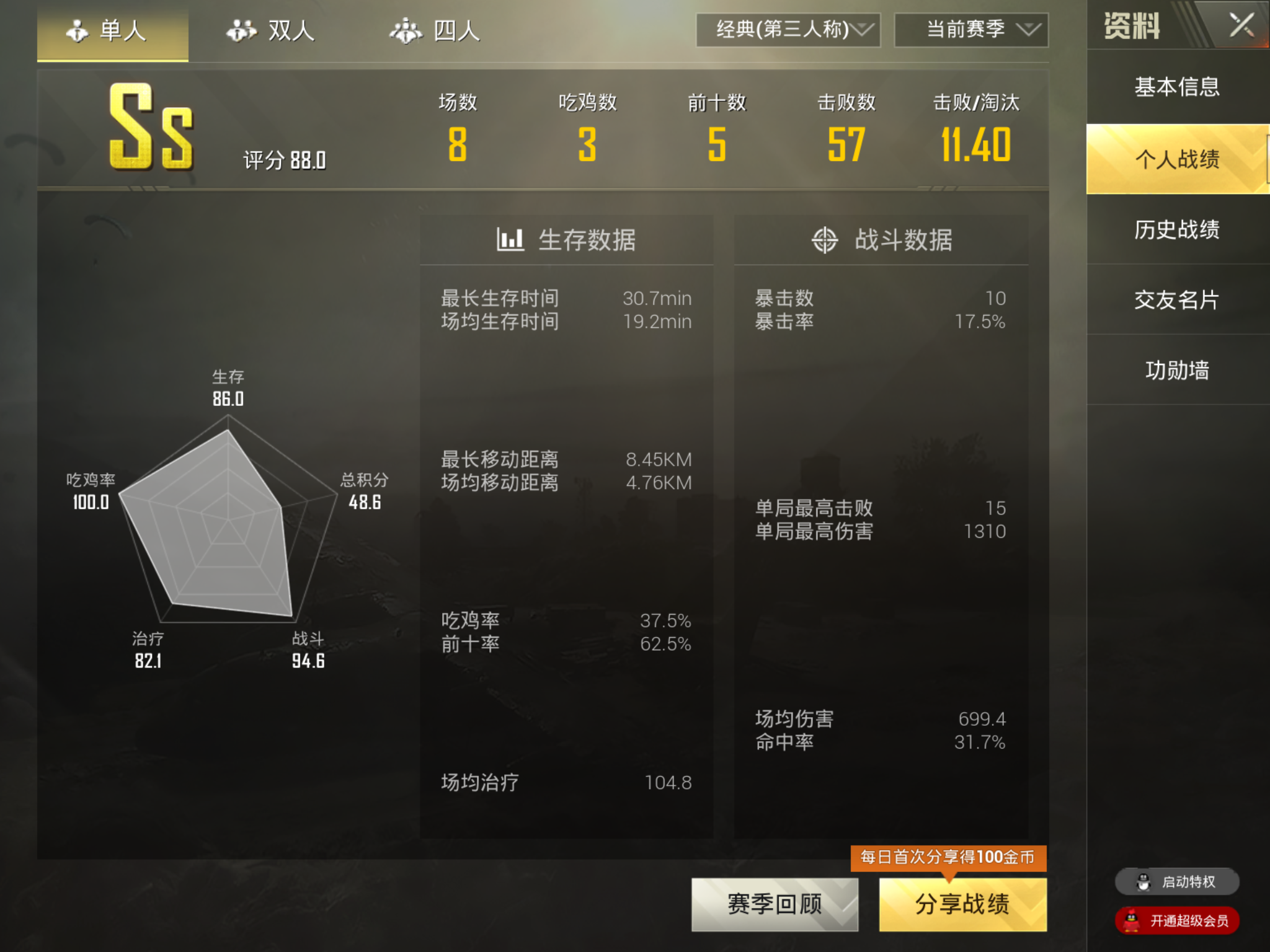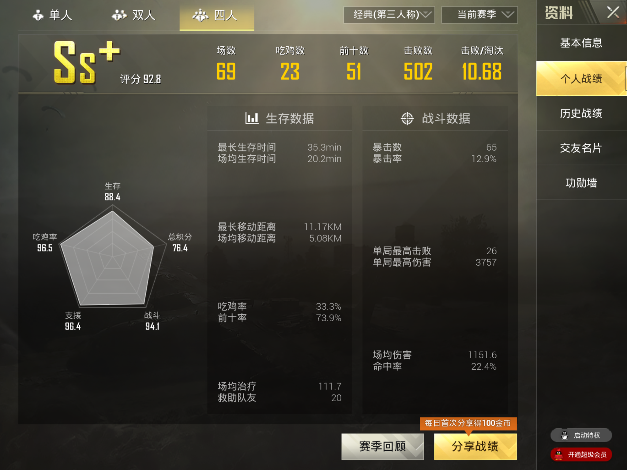 放几张图吧先,四排最高一场26击杀,好像是星钻4还是5的局,单人四排也吃过鸡,这游戏有时候真的要靠点点运气哈哈哈