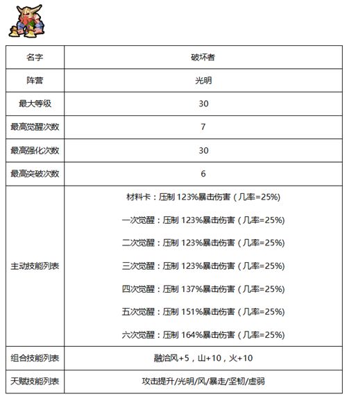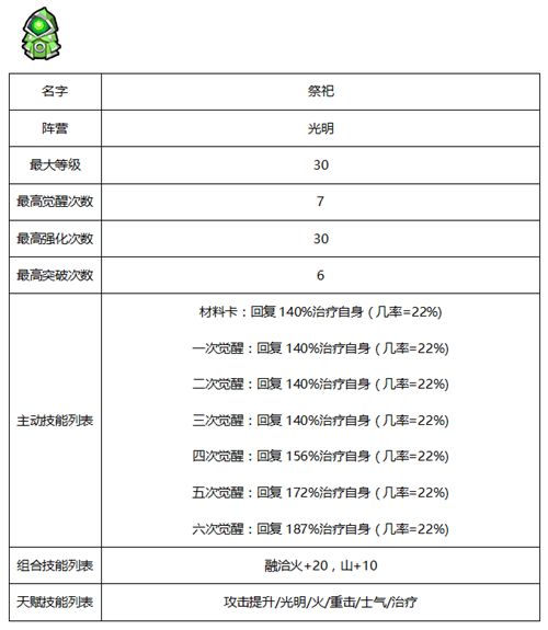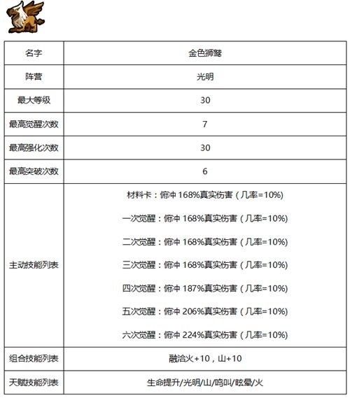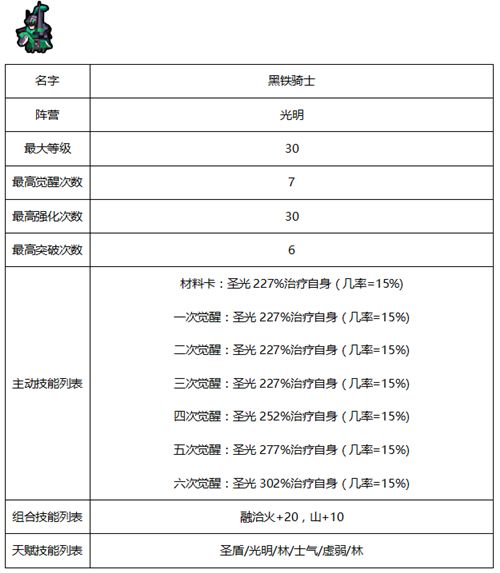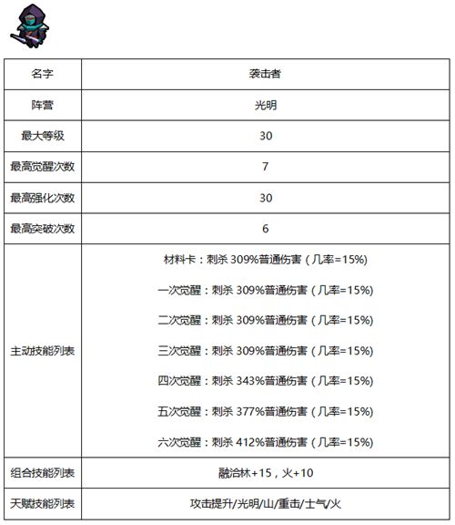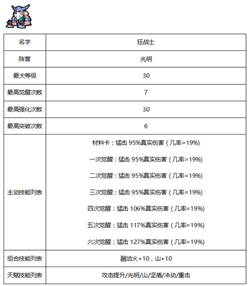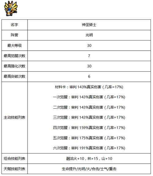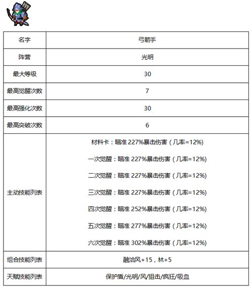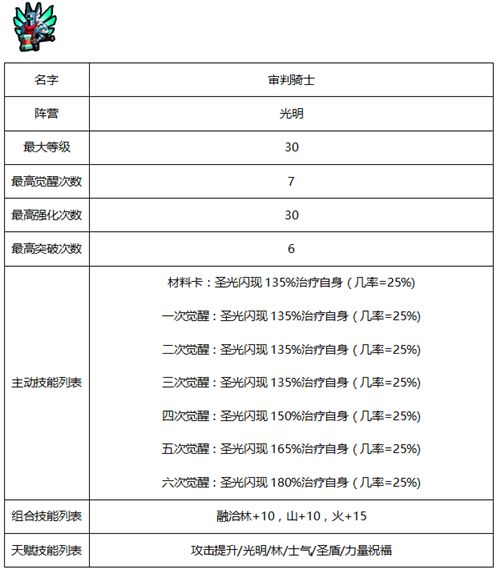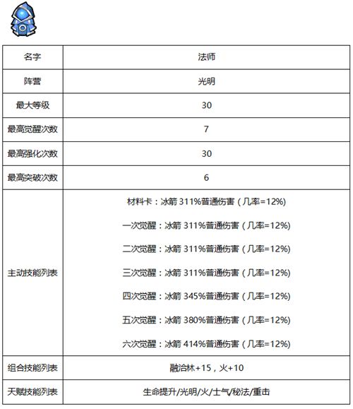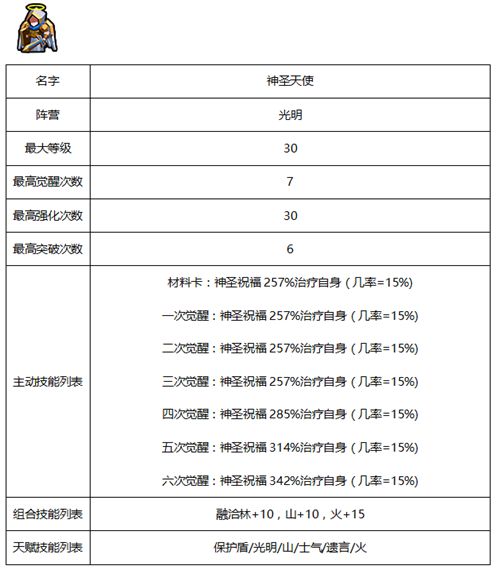 佣兵相关属性及天赋-光明系