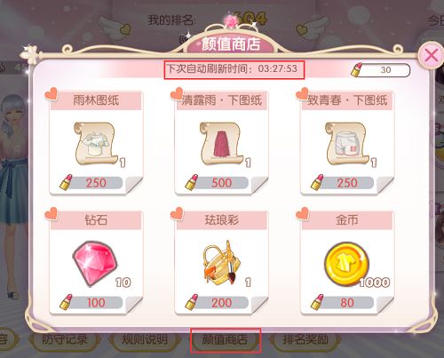 颜值怎么使用呢?不要着急嘛,在女神战里面有个颜值商店,你可以使用颜值来兑换你所需要的物资了。有稀有服饰碎片,钻石,金币等等。商店的物品会自动刷新也有刷新时间提