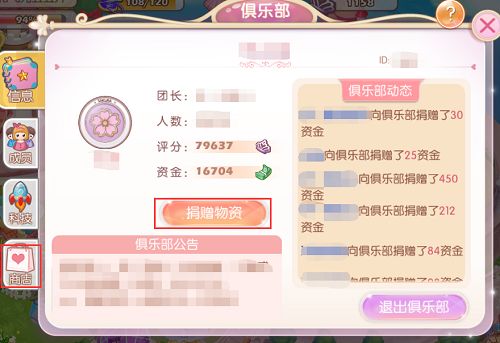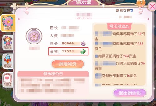 3资金 资金对于大部分玩家来说是没什么用的,但对于俱乐部的管理者来说就十分有用了。大家在给俱乐部捐献会获得荣誉点,同时俱乐部也会获得资金。团长和副团长花费资金可升级俱乐部等级、科技。也是给大家带来福利啊,这些肯定不是一个人就能完成的,这是需要俱乐部每个成员的努力才能达成的,这样也提高了大家的凝聚力结交更多的朋友φ(>ω<*) 。