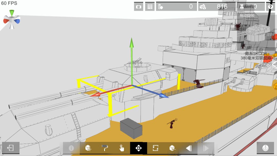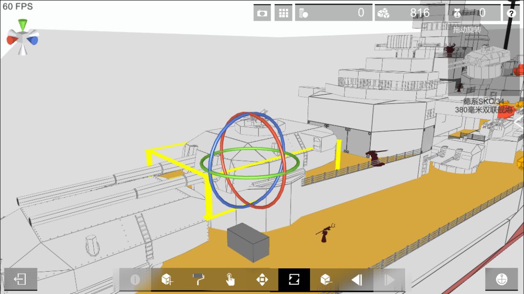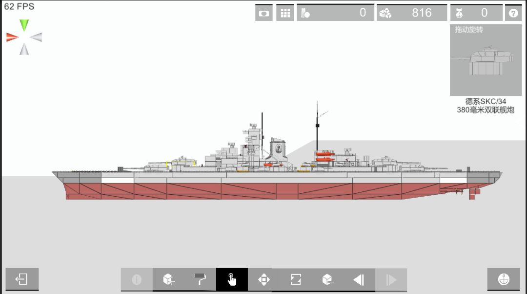 接下来是近期关于船只设计界面的一些优化。我们增加了专门的零件旋转和零件移动工具,对于不是工艺战舰系列的老玩家,可能会不适应工艺战舰以前的信息窗拖动旋转设定,因此全新的移动及旋转工具参考了目前的一些三维建模软件: