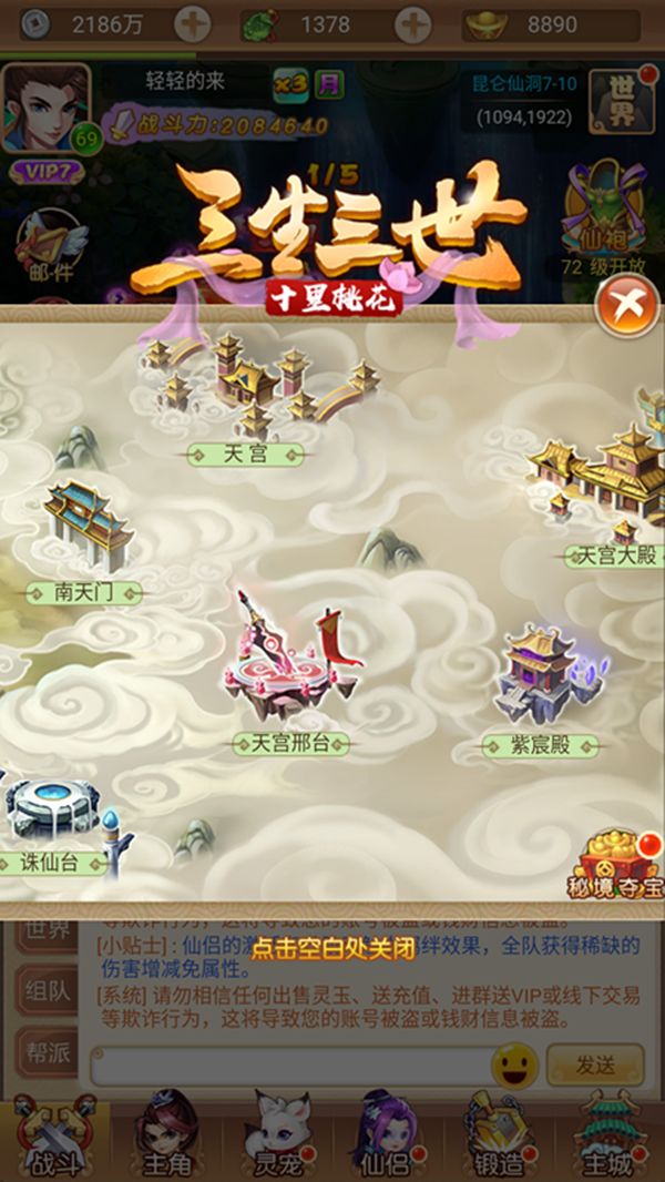 三生三世十里桃花的游戏背景设定为上古神话时期,在四海八荒中存在着多个势力与部落,其中以“青丘”“神族”“鬼族”和“昆仑”等势力最为强大。
