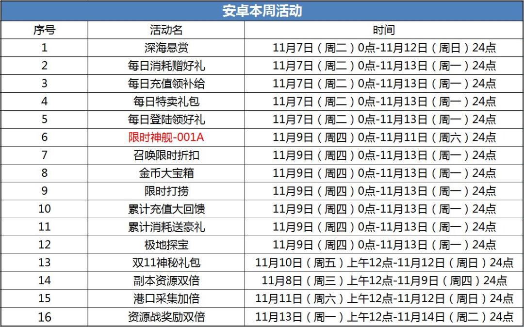 所以运营大佬特意设身处地的为大家(同时也为他自己)准备了一系列双11精彩活动,让各位提督忘记一切悲伤,与麾下舰姬一同欢度佳节~