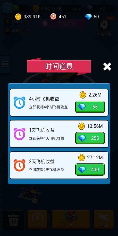 游戏中有两种令飞机提升火力的方式,其一为合成解锁新飞机,每两架飞机可以合成一架更高一级、更狂拽酷炫吊炸天的新飞机;其二则为提升飞机自身射速、火力等方面的属性以及各部位武器的等级。相信如此全方位逐步提升,完美战机必可任你统御、大杀四方!